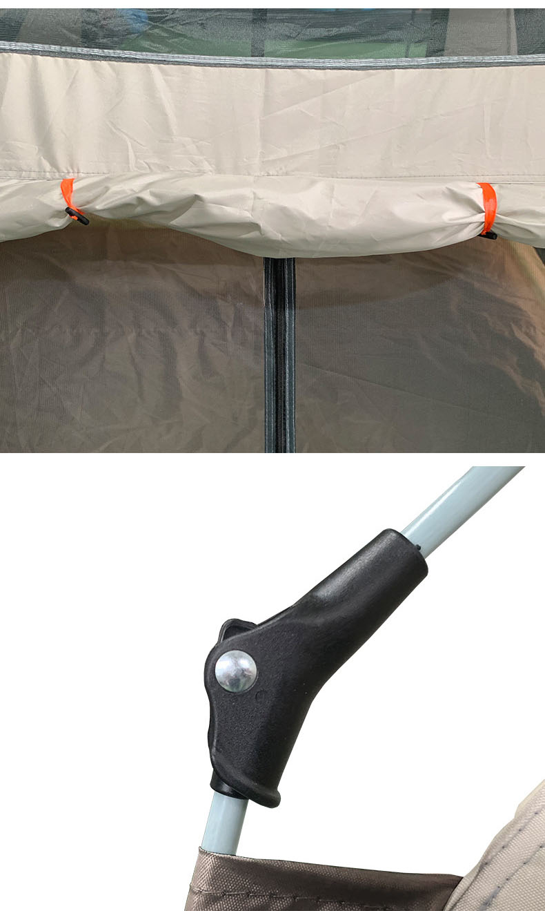 - Kevyt jousirakenteinen automaattituki helpottaa pystytystä ja kokoamista.