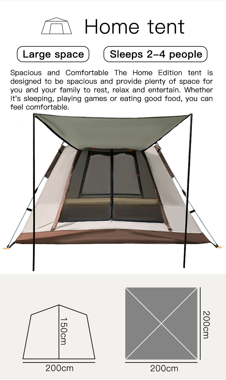 Tämä kotikäyttöön suunniteltu teltta tarjoaa runsaasti tilaa lepäämiseen, rentoutumiseen ja yhdessäoloon. Sisälle mahtuu mukavasti nukkumaan, pelaamaan pelejä tai ruokailemaan, ja avara sisätila tekee oleskelusta miellyttävää sekä lapsille että aikuisille.