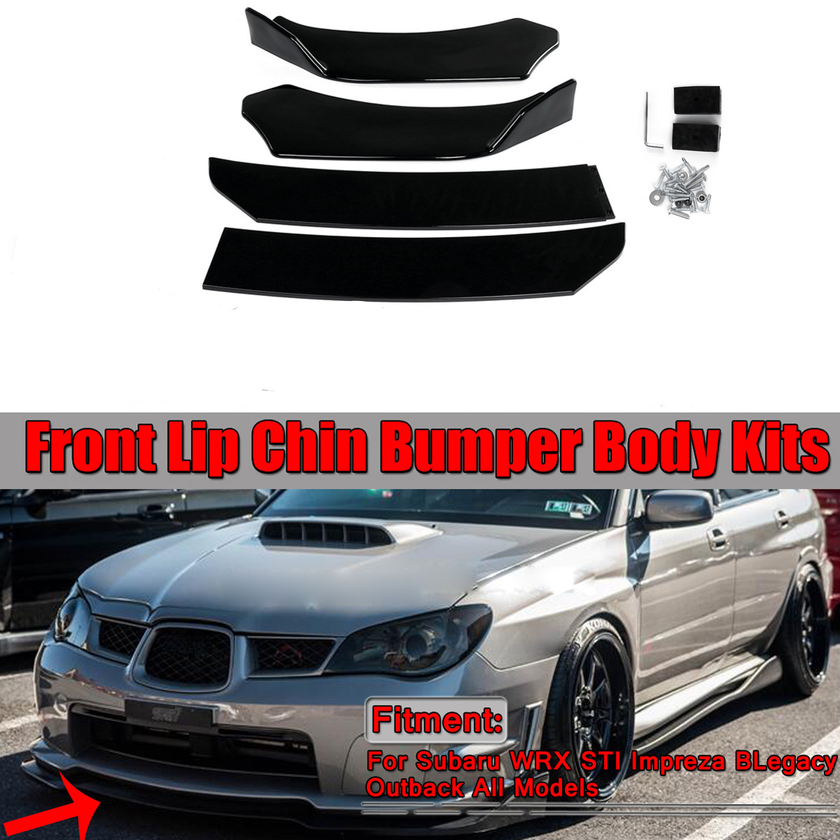 AUTSOME 4 kpl kiiltävä musta etupuskurin huulisarja universaali