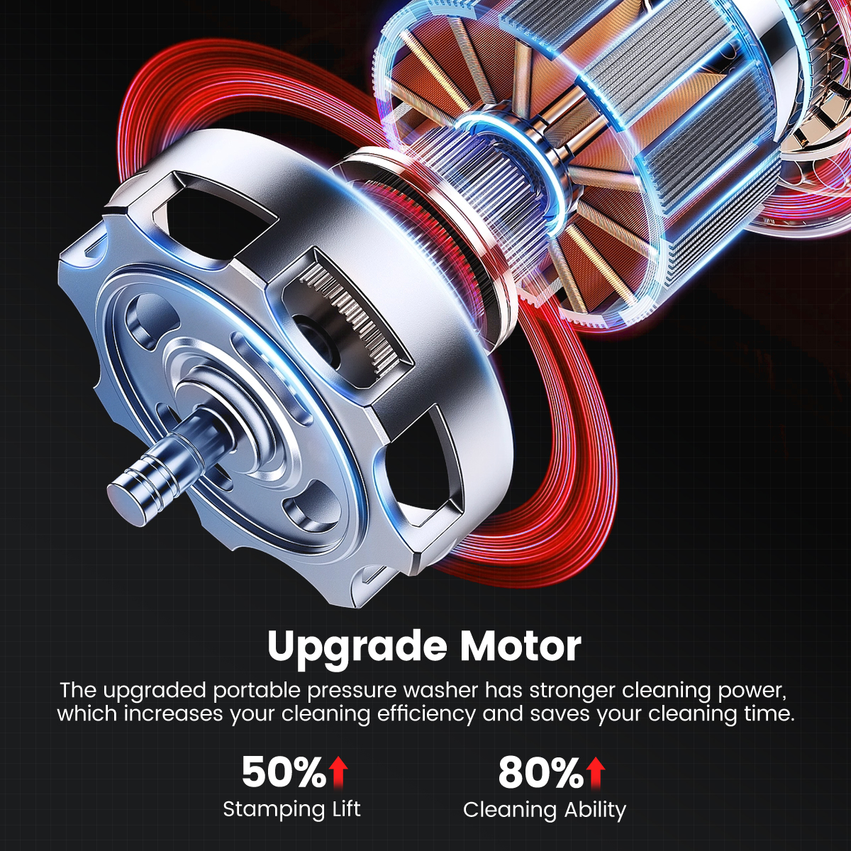 Kompakti ja johdoton painepesuri auton, puutarhan ja kodin nopeaan puhdistukseen. Harjaton moottori, pitkäikäinen akku ja 6-in-1-säädettävä suutin tekevät käytöstä vaivatonta eri kohteissa – ämpäristä, pullosta tai hanasta itseimevänä.