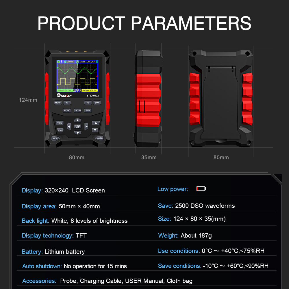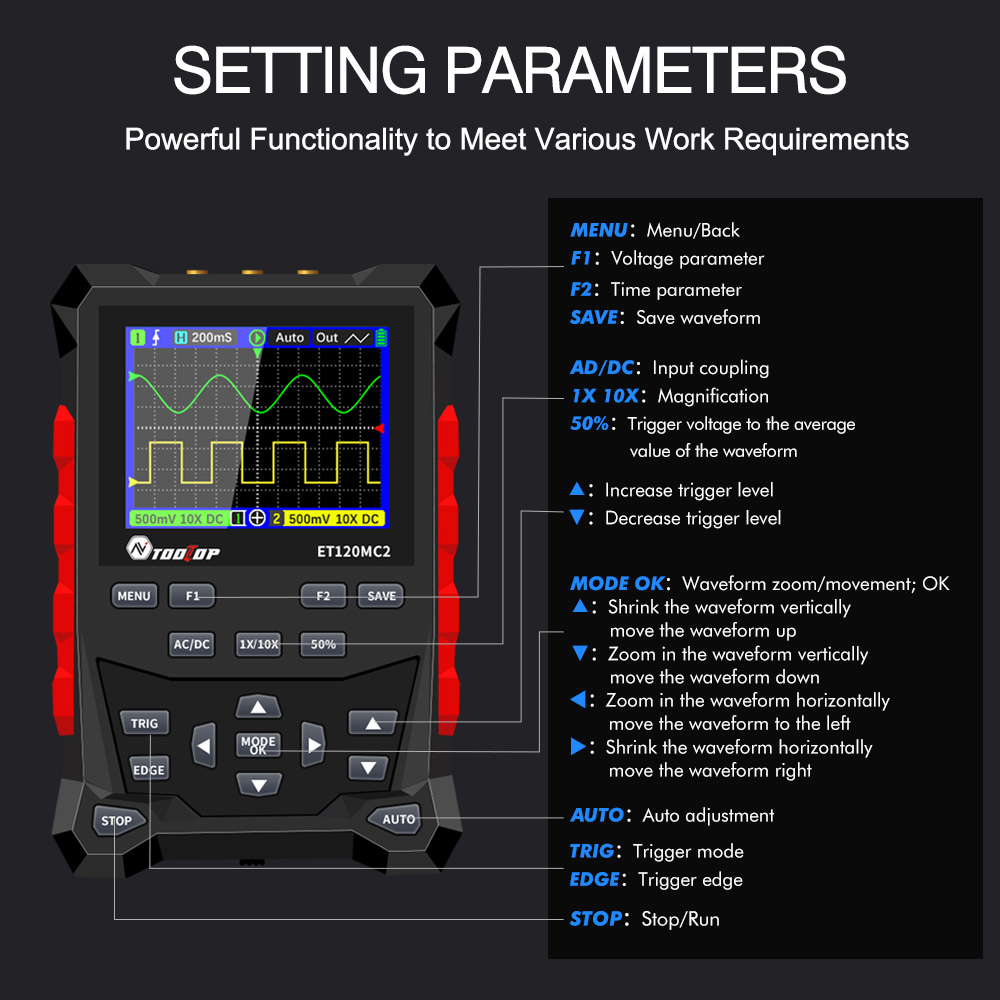 TOOLTOP ET829 OSC kolmitoiminen kannettava 80MHz kaksikanavainen oskilloskooppi tekoälyesikatselu
