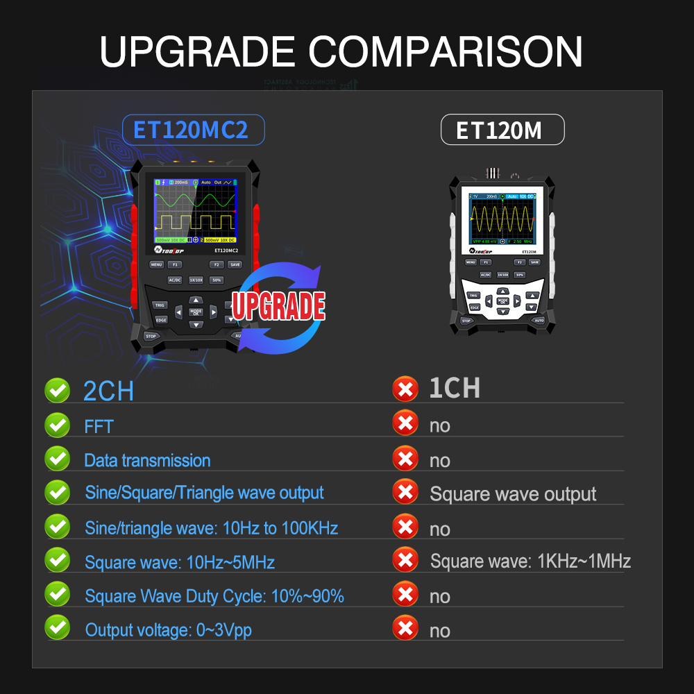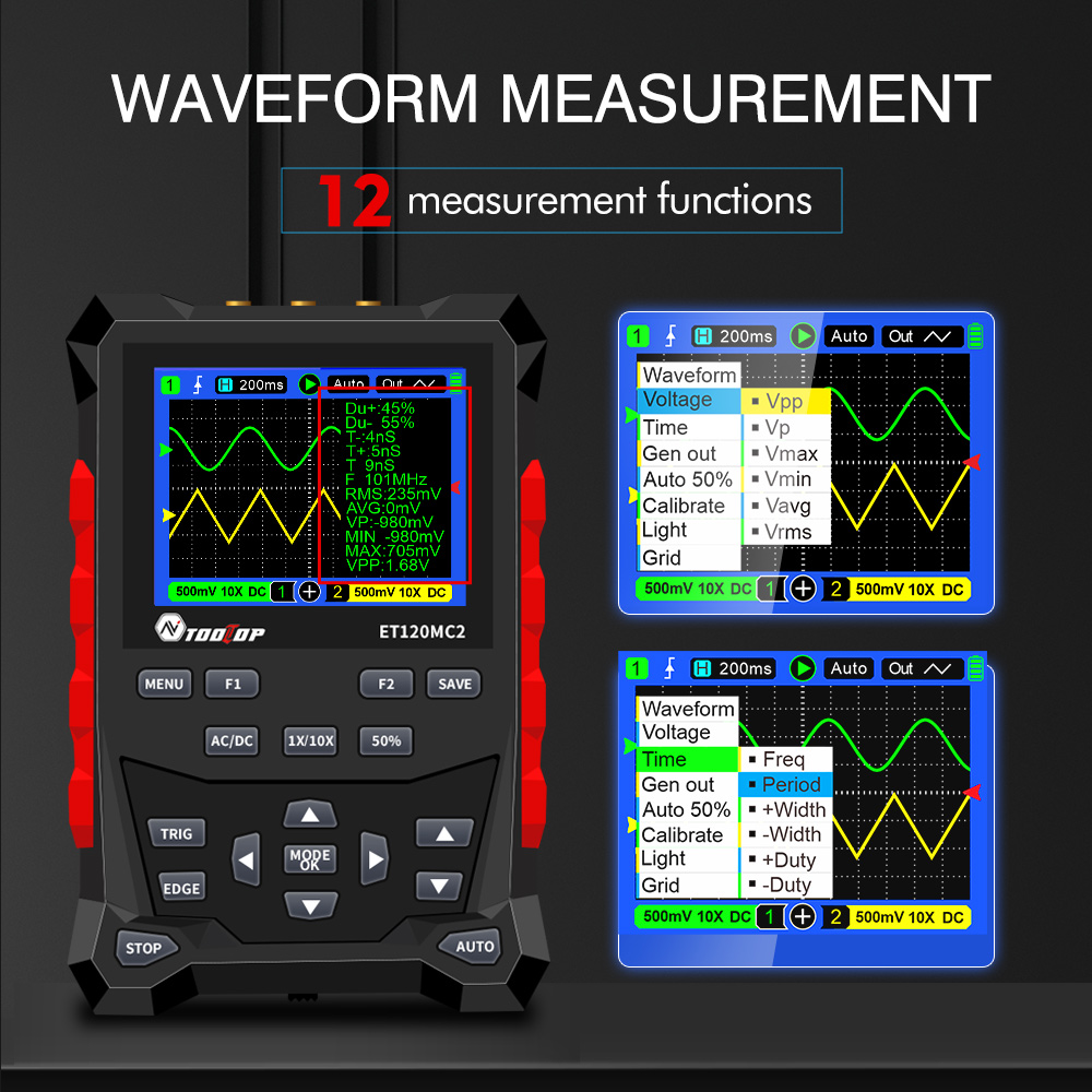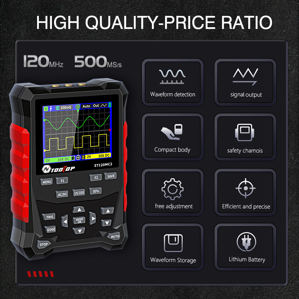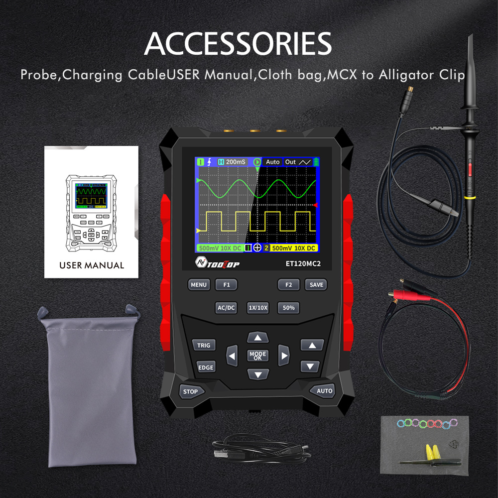 AV Tooltop ET120M ET120MC2 kannettava digitaalinen oskilloskooppi 120MHz 500MSa/s 2-kanavainen TFT-näytöllä