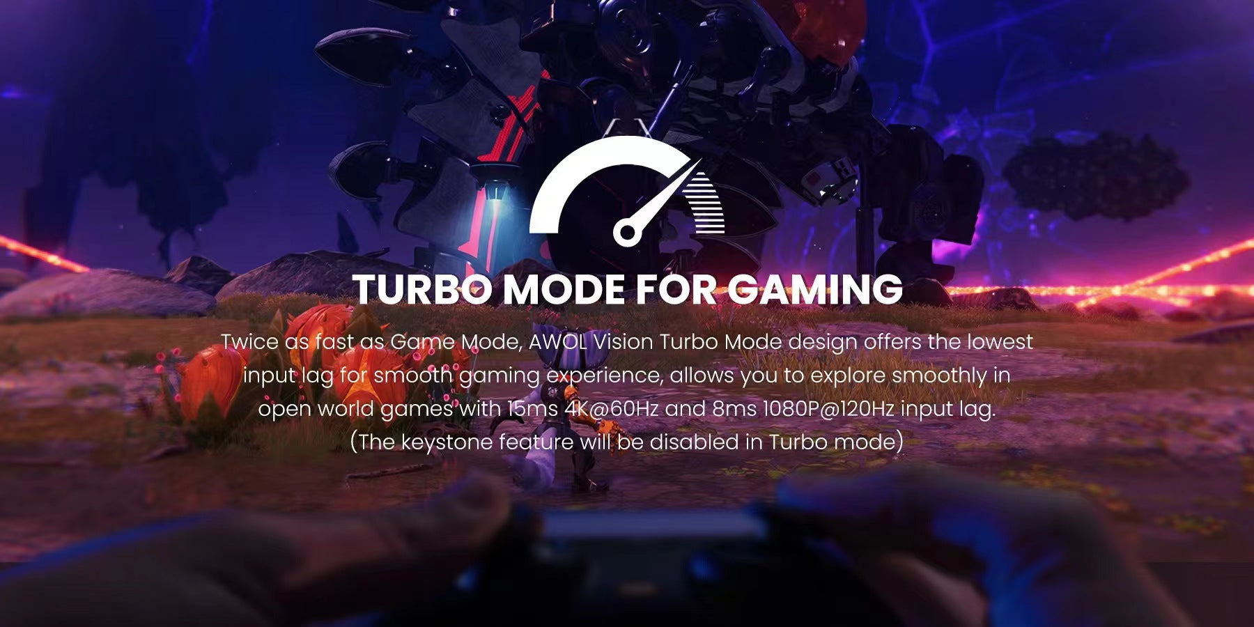 Vaihda Pelitilaan ja koe AWOL VISIONin erittäin matala viive: 30 ms 4K-tilassa ja 17 ms 1080P-resoluutiolla. Silmäystävällinen ja miellyttävä pitkäänkin pelaamiseen.