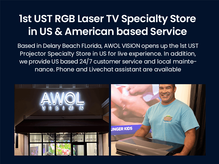 Toisin kuin ultralyhyen heiton projektorit, joissa on väripyörä, AWOL VISION käyttää puhdasta kolmivärilaseria (punainen, vihreä, sininen) ja tuottaa värit suoraan. Värit ovat elävämmät, ääni vähenee ja sateenkaari-ilmiö minimoituu.