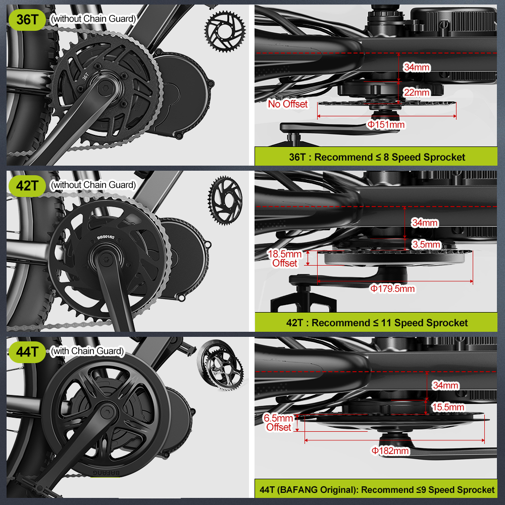 【Yleinen yhteensopivuus】 Bafang BBS-02B -keskimoottorisarja sopii fatbike-pyöriin, maastopyöriin, maantiepyöriin ja moniin muihin malleihin. Sarja on suunniteltu pyöriin, joissa on 65–73 mm:n keskiö.