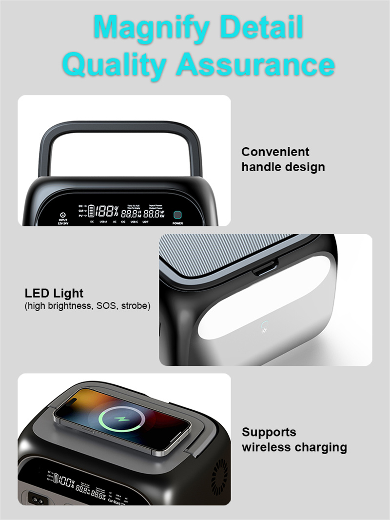 1. Suuri kapasiteetti: 108000mAh / 345.6Wh varmistaa riittävän virran monille laitteille retkillä, matkalla ja hätätilanteissa.