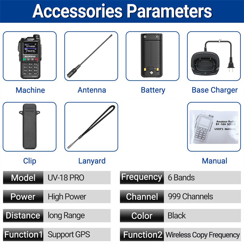 Baofeng UV-18 PRO GPS-radiopuhelin pitkä kantama 999 kanavaa langaton kopiointi