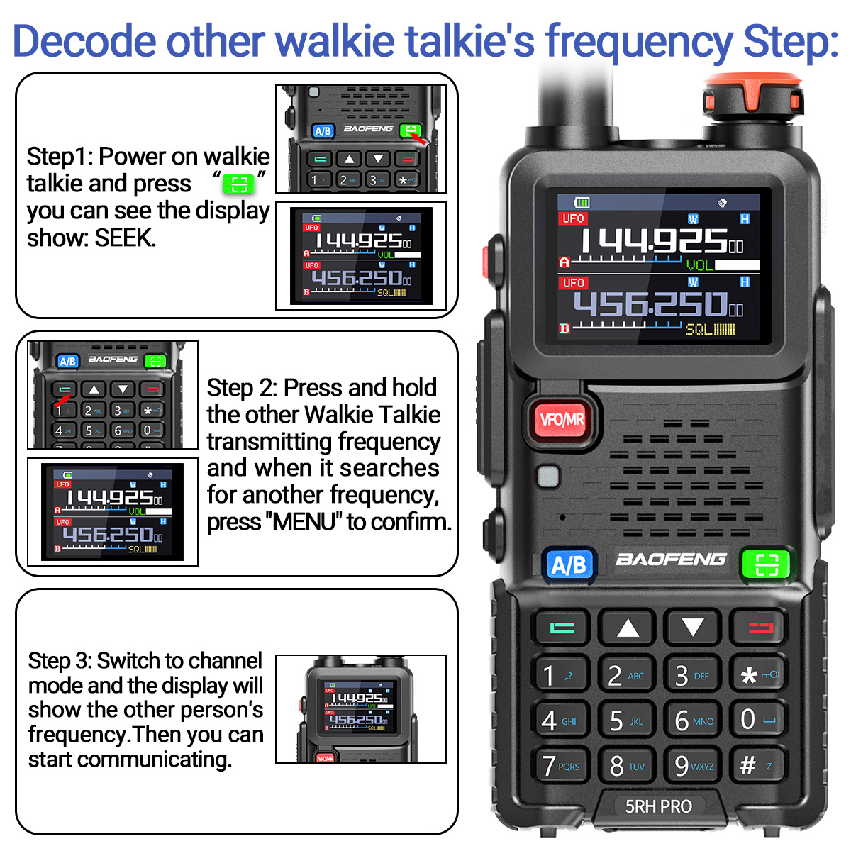 4. Vaivaton langaton taajuuskopiointi: “FQSCAN”-tilassa (EXIT-painike) laite etsii ja tallentaa taajuuksia ja yksityisyyskoodeja toisista radioista, mikä helpottaa yhteensopivuutta.
