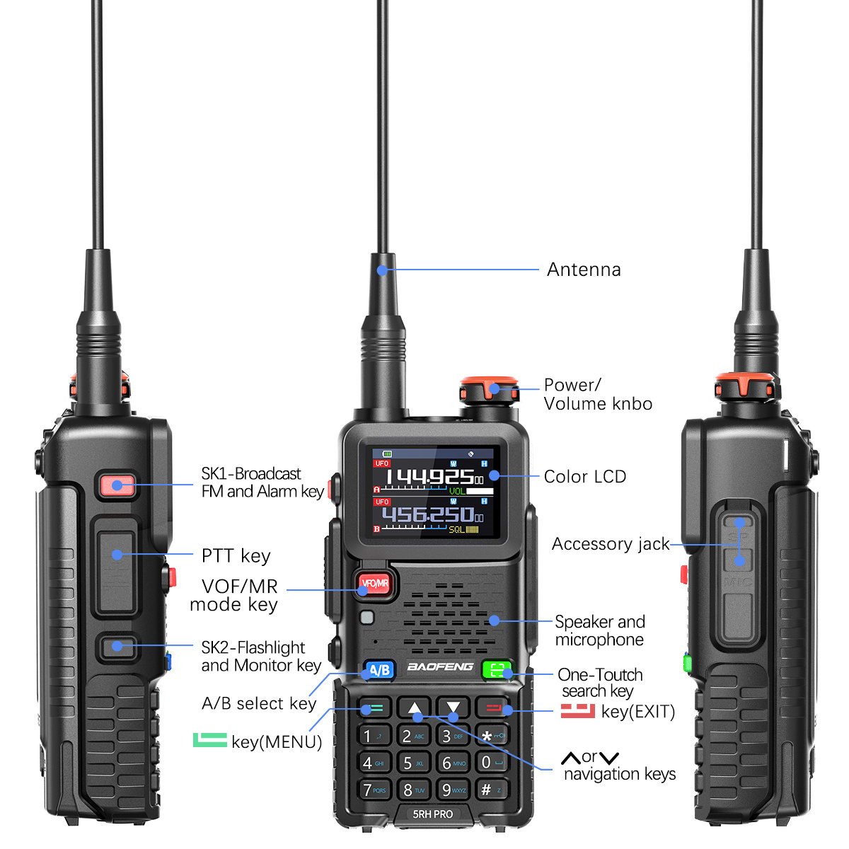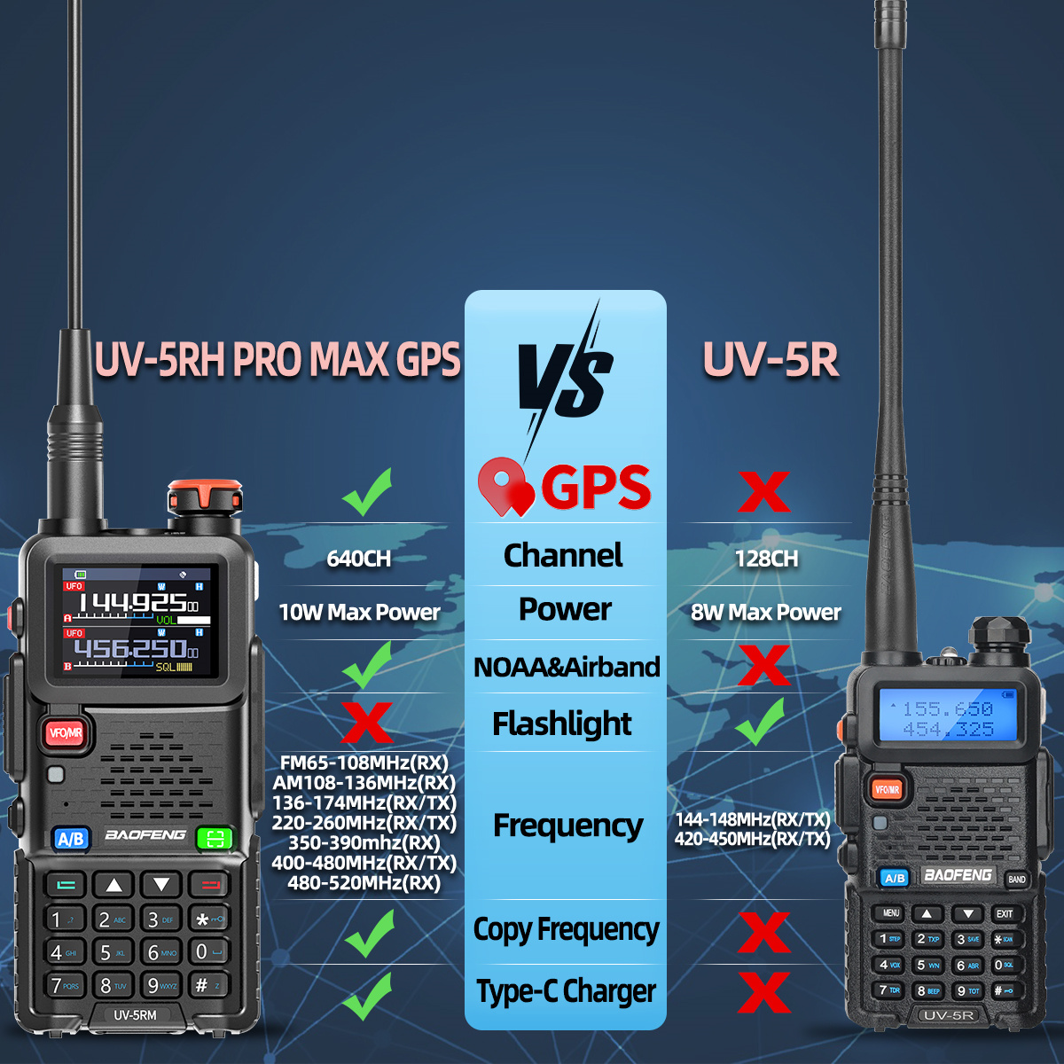 Baofeng UV-5RH PRO 10W GPS monikaistainen ladattava kaksisuuntainen radiopuhelin pitkä kantama