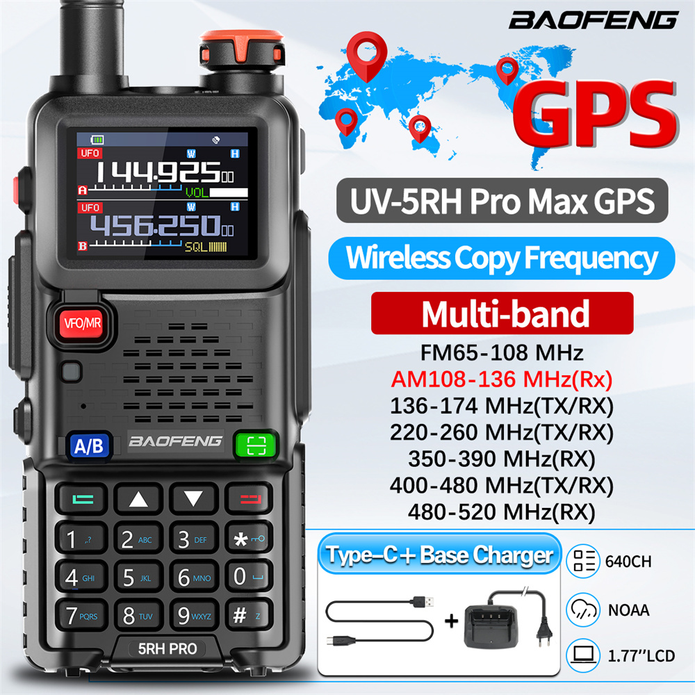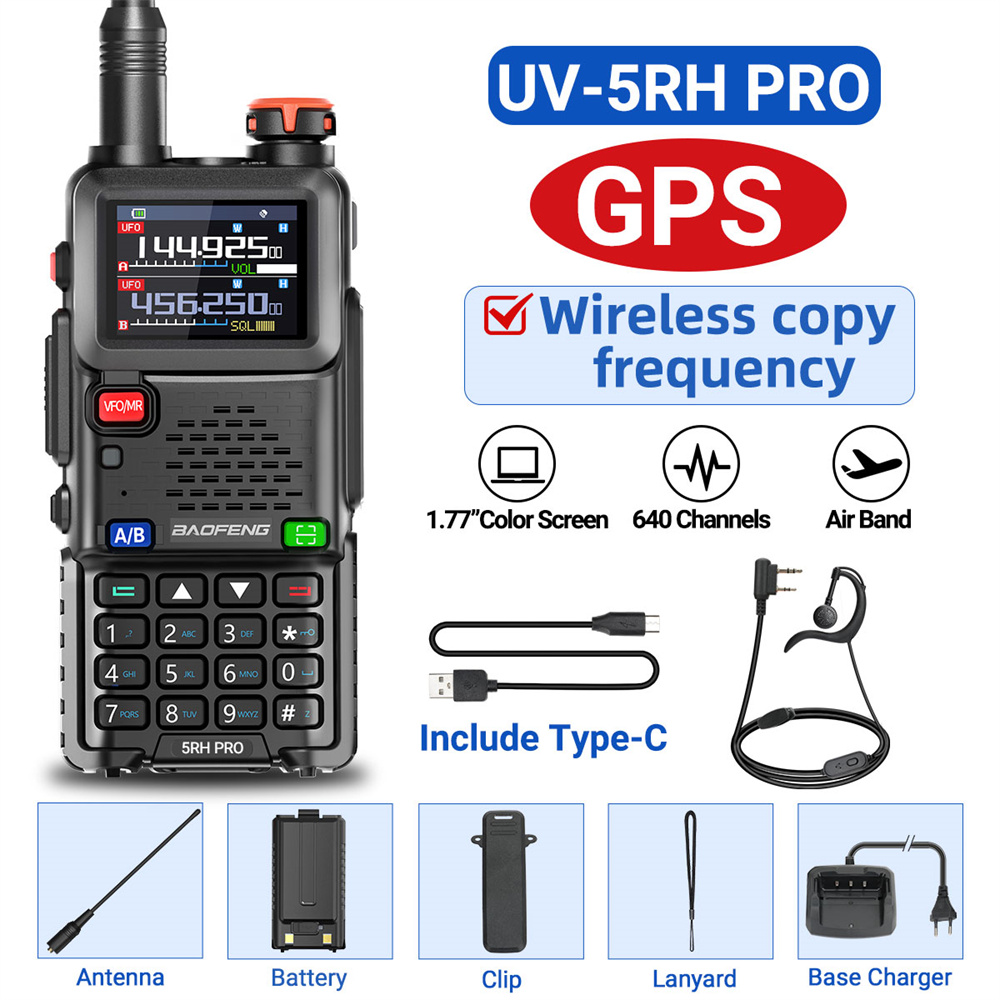 BAOFENG UV-5RH PRO 10W gps-radiopuhelin 640-kanavaa C-tyypin lataus NOAA-sääradio amatööriradio