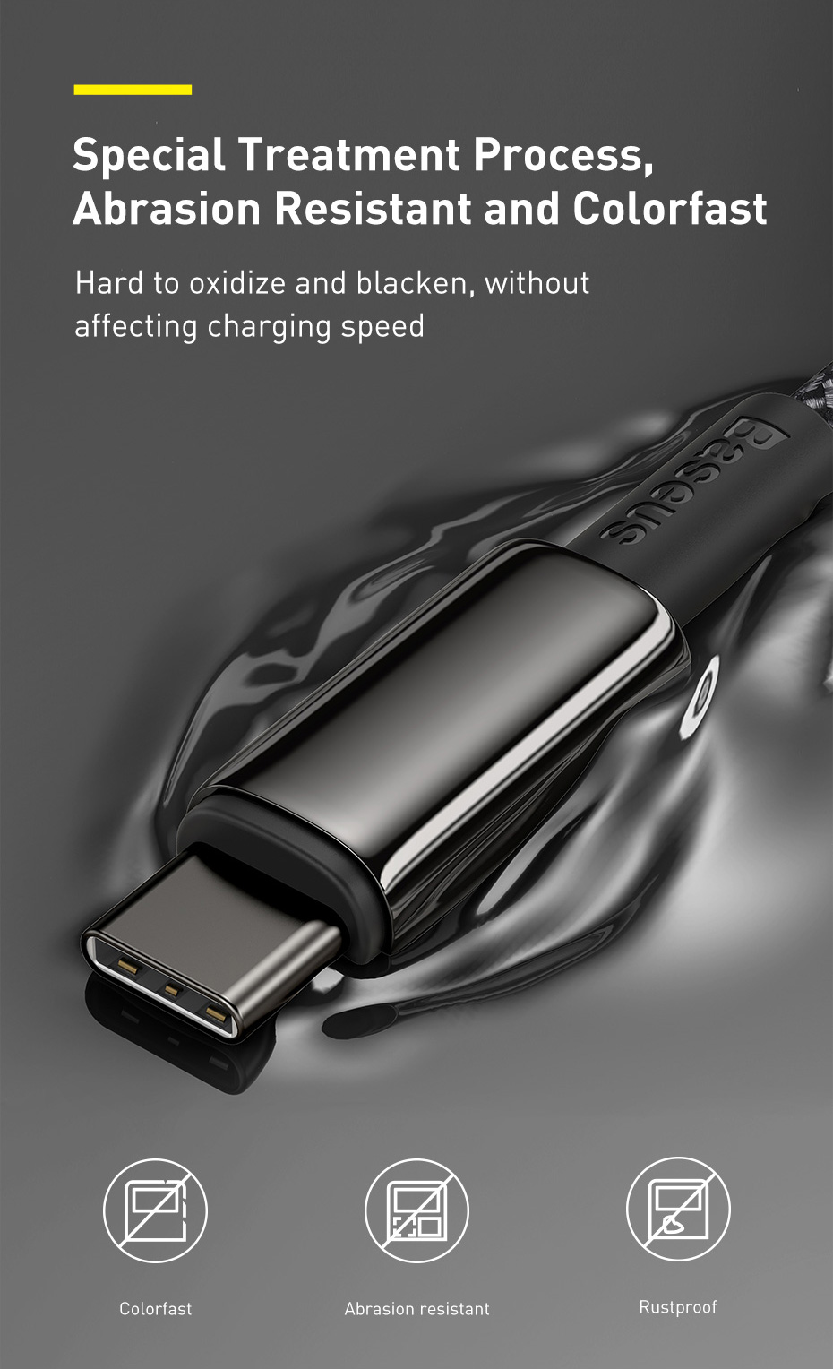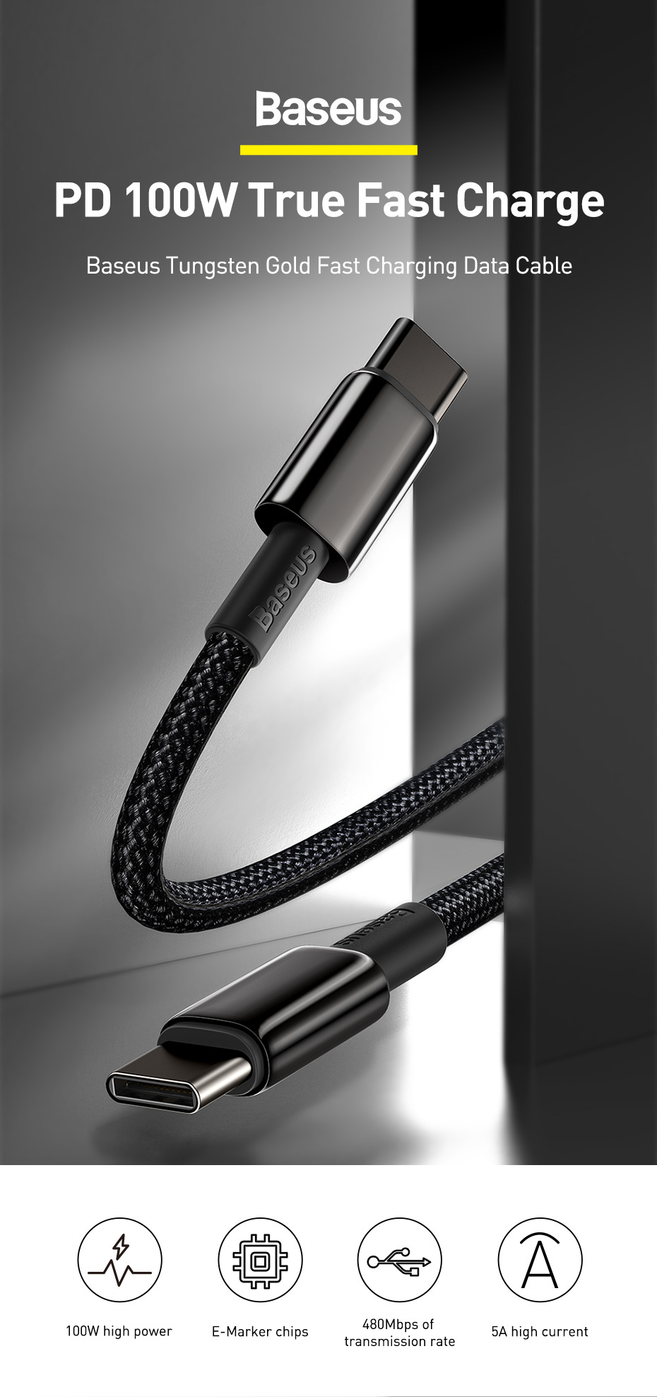 Kestävä Type‑C – Type‑C -kaapeli päivittäiseen käyttöön. Nylonpunos ja sinkkiseosliittimet tuovat pitkäikäisyyttä, 100W (20V/5A) teho mahdollistaa nopean latauksen, ja 480Mbps tiedonsiirtonopeus riittää sujuvaan synkronointiin.