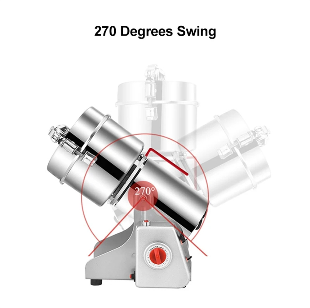 MIXER GRINDER 2500W -kone murskaa nopeasti sekä pehmeät että kovat kuivat aineet. Useimmat yrtit jauhautuvat 50–350 seulan karkeuteen puolessa minuutissa, ja 350 seulan karkeuteen noin minuutissa.
