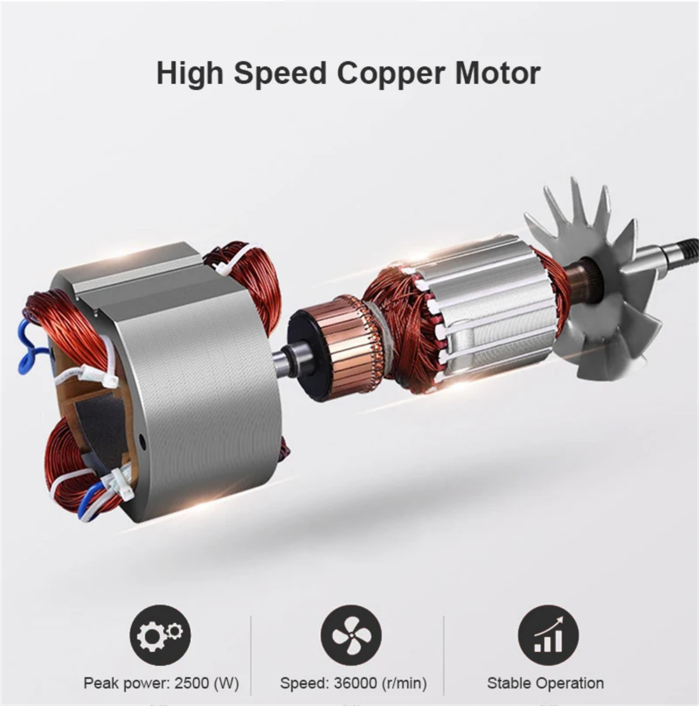 - Nopea hienonnus: 2500W teho ja noin 36000 (r/min) kierrosnopeus.