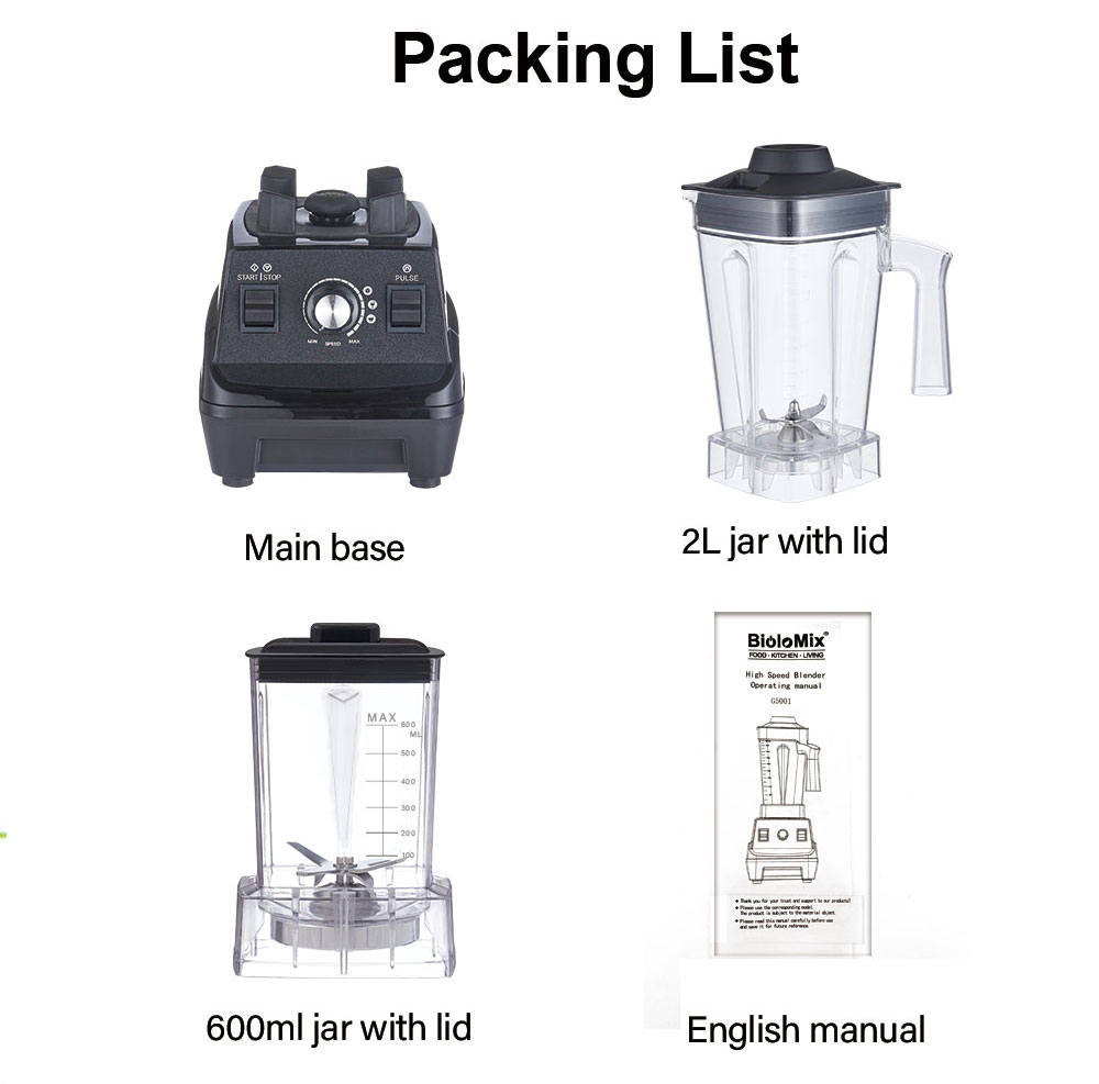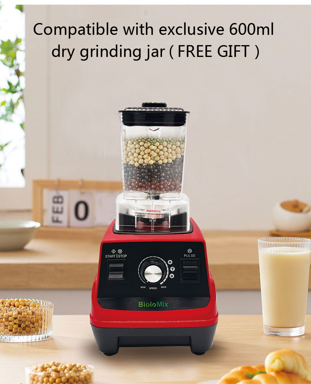 BioloMix raskas ammattitehosekoitin 2200-wattinen 2-litrainen kannu jäiden ja pakasteiden murskaaja