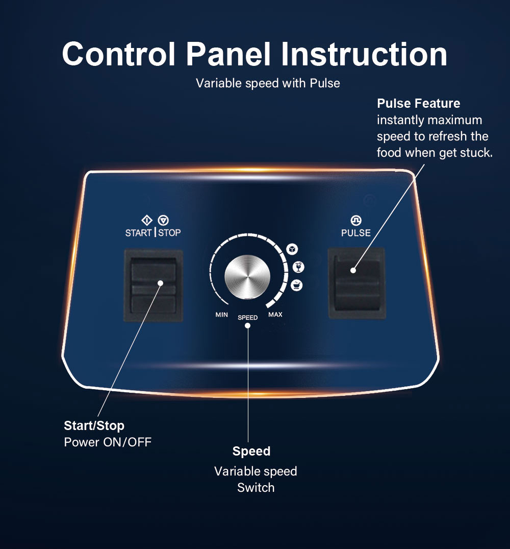 Säädettävä nopeus ja pulssitoiminto: Portaaton nopeudensäätö eri resepteille sekä pulssipainike koostumuksen tarkkaan hallintaan.