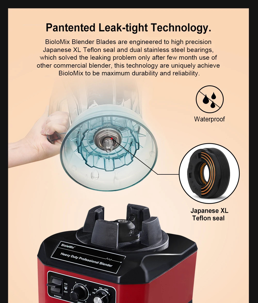 BioloMix raskas ammattitehosekoitin 2200-wattinen 2-litrainen kannu jäiden ja pakasteiden murskaaja