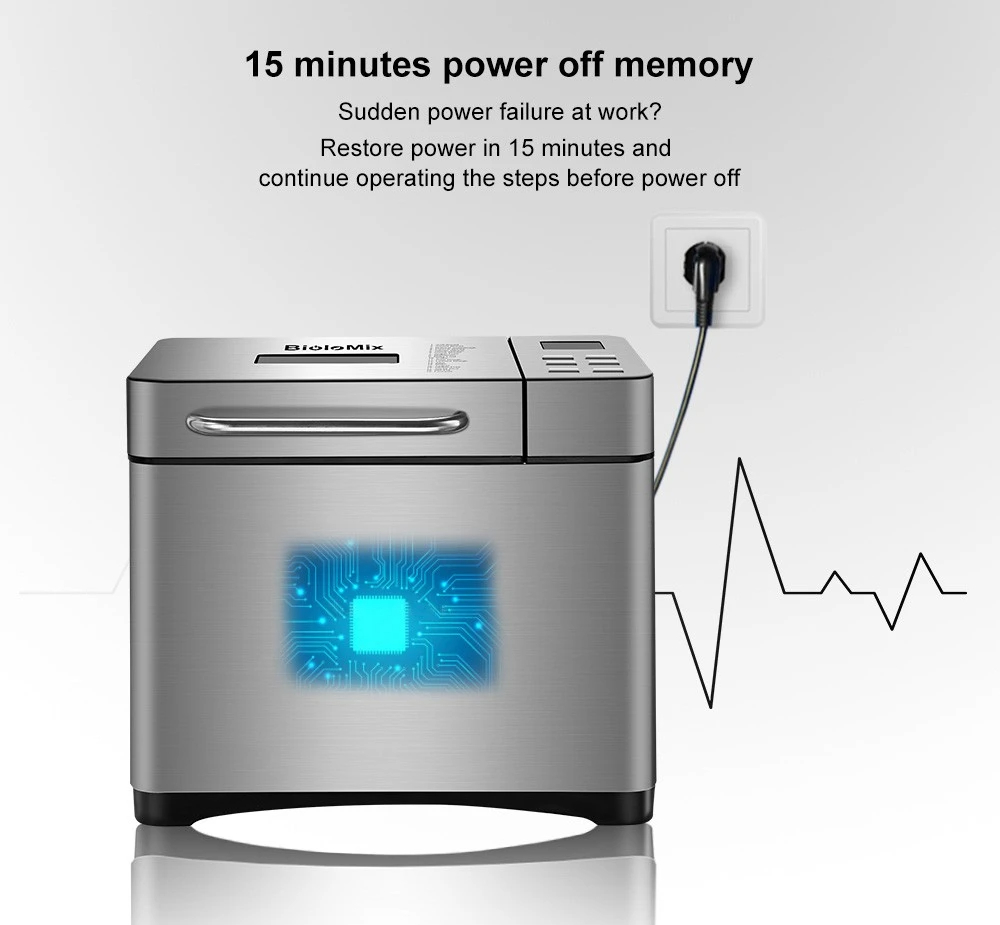 BioloMix ruostumattomasta teräksestä 1 kg leipäkone 19 ohjelmaa 650 wattia