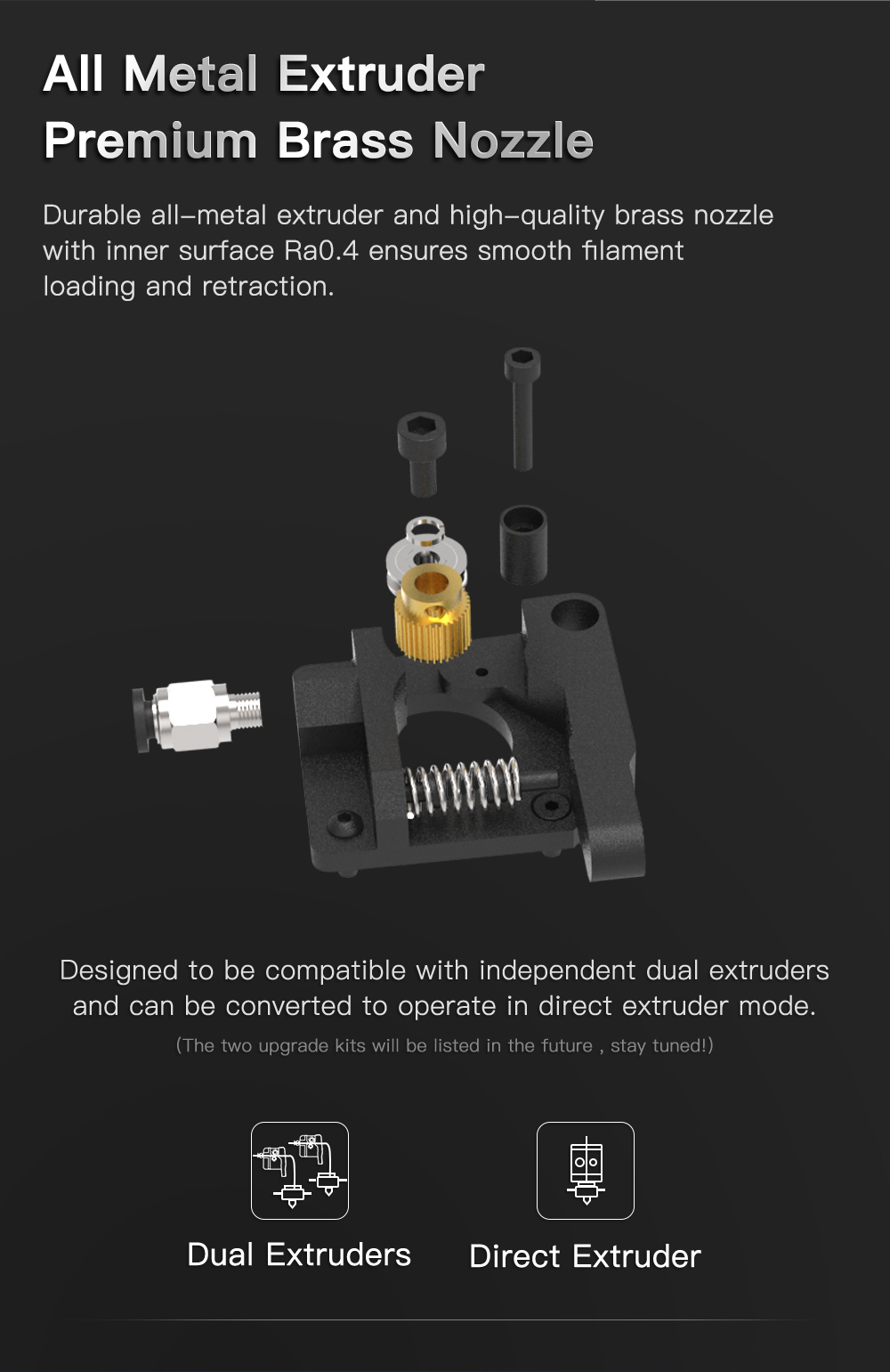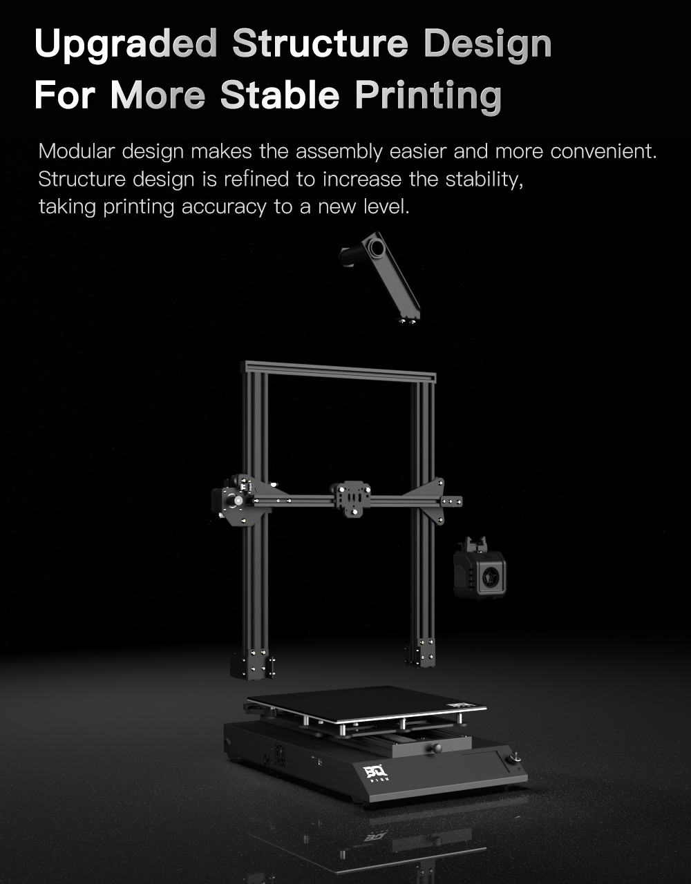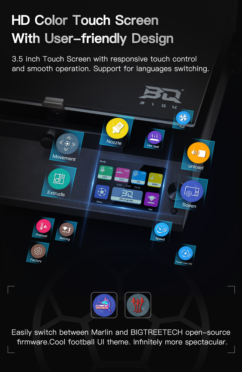 Induktiivinen tasoitus helpottaa käyttöönottoa ja parantaa tulostusvarmuutta. Suuri rakennustilavuus antaa enemmän liikkumavaraa luoville projekteille ja prototyypeille.