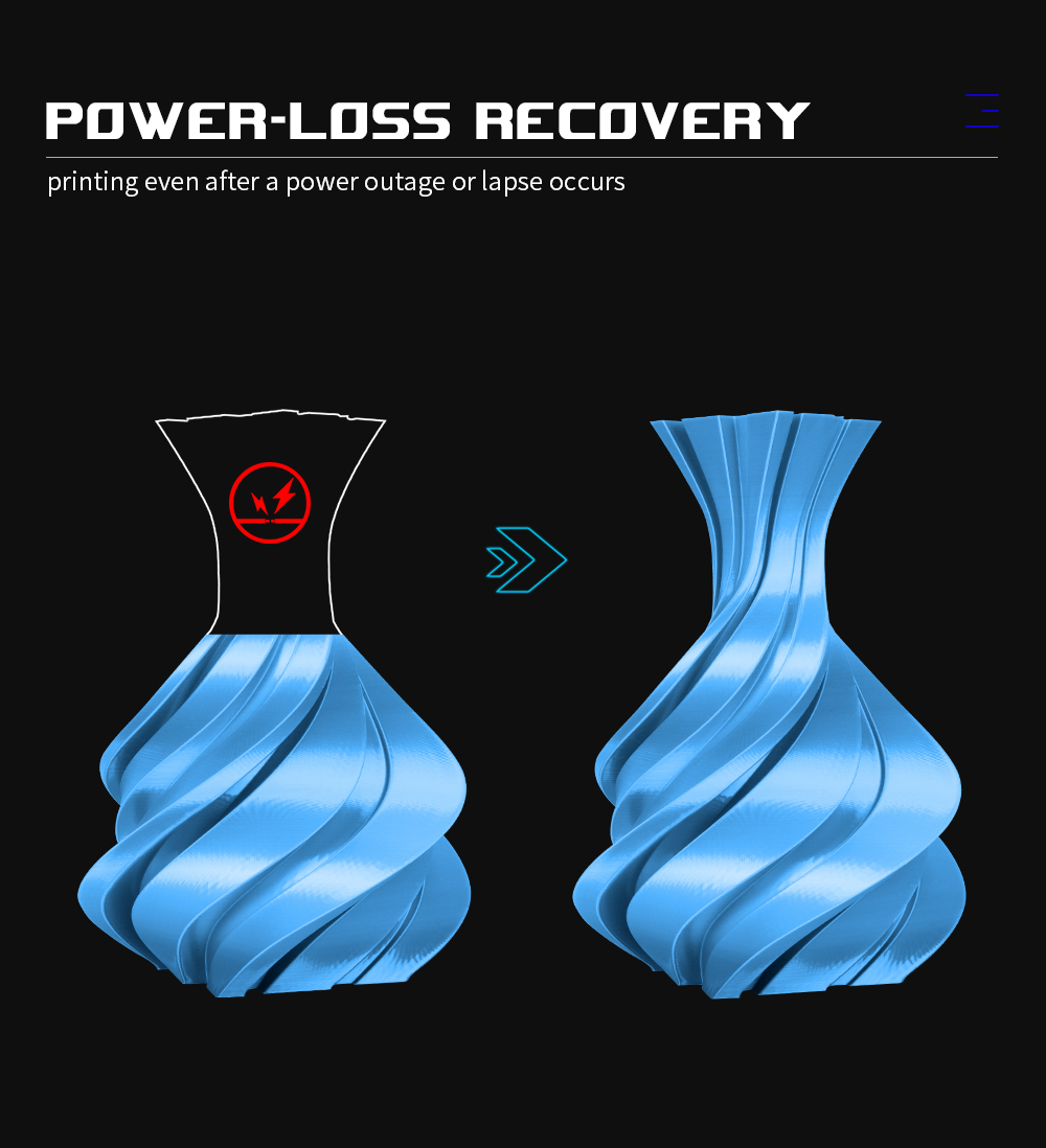 Varustettu tunnetulla Mean Well -virtalähteellä, joka tarjoaa suojaukset oikosulkua, ylikuormitusta, ylijännitettä ja ylikuumenemista vastaan. Tulostus on vakaampaa ja turvallisempaa pitkäaikaisessa käytössä.