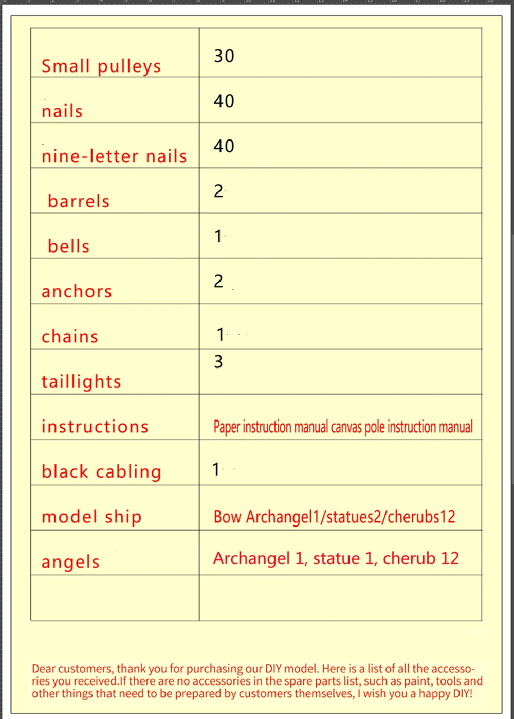 Huomio: Tämä laivamallisarja toimitetaan puun värisenä. Kuvissa näkyvä maalaus ei sisälly tuotteeseen, vaan maalaus tehdään itse.