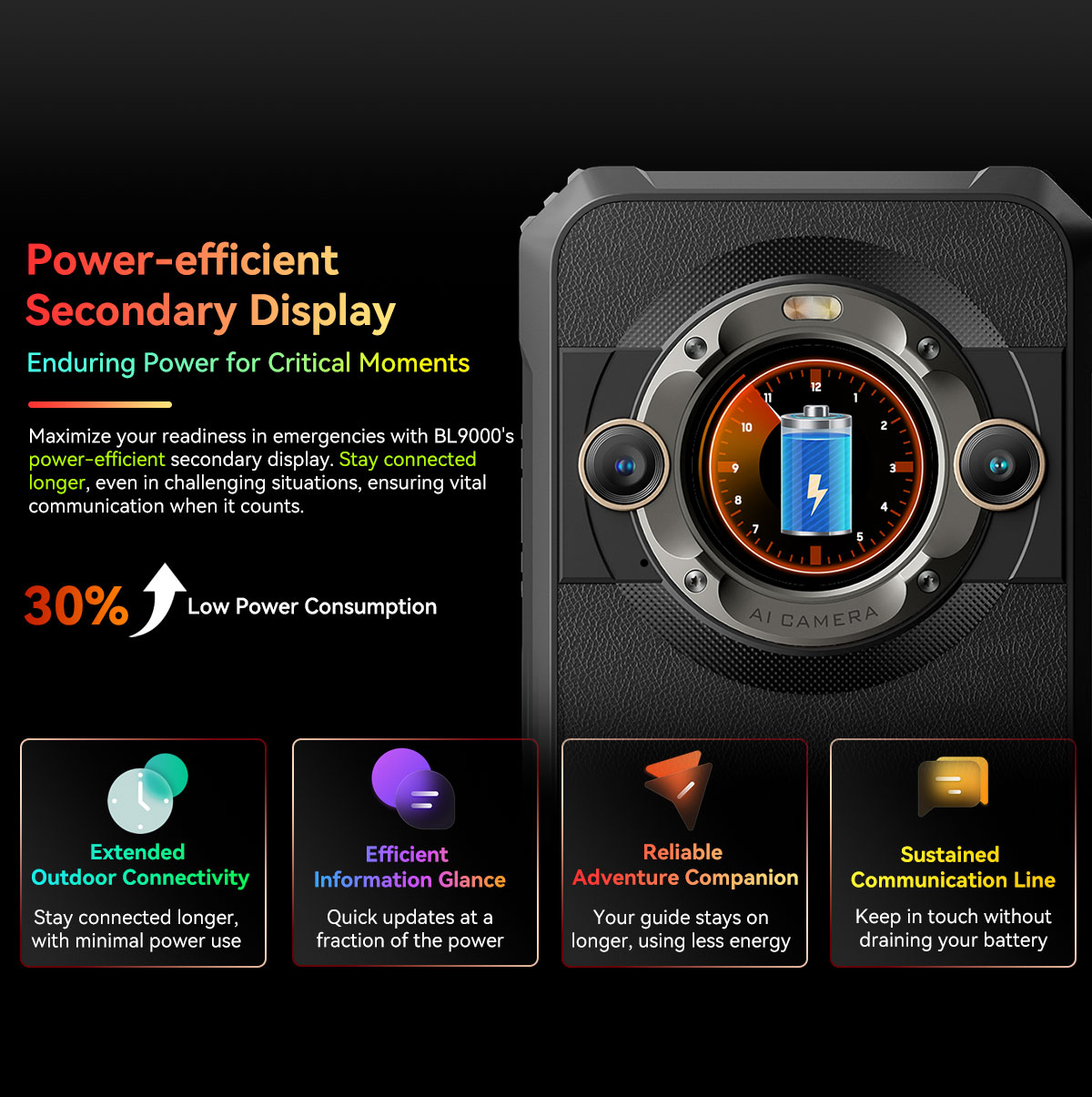 Kestävä Blackview BL9000 yhdistää tehokkaan MediaTek Dimensity 8020 -järjestelmäpiirin, suuren 8800mAh akun 120W pikalatauksella ja kaksoisnäytön. Laaja 5G-taajuustuki, IP68/IP69K/MIL-STD-810H -kestävyys ja 50MP kamerat tekevät siitä monipuolisen kumppanin vaativaan käyttöön.