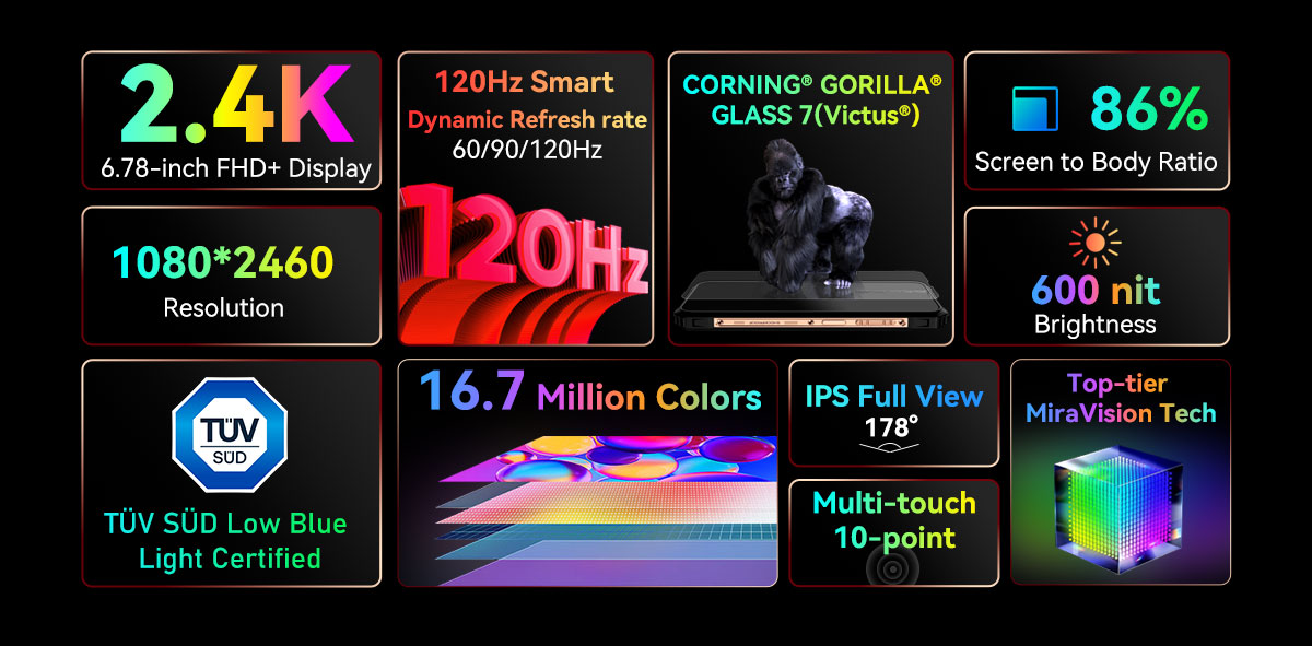 Käyttöjärjestelmä: Android 13 Suoritin: MediaTek Dimensity 8020 (6nm), kahdeksanydinsuoritin, ARM Cortex-A78 @ 2.6GHz*4, ARM Cortex-A55 @ 2.0GHz*4, jopa 2.6GHz Grafiikka: ARM G77 MC9 836MHz RAM-muisti: 24GB = 12GB LPDDR4x + 12GB laajennus (12GB on virtuaalimuistin laajennus) Tallennustila: 512GB UFS3.1 Muistikortin laajennus: ei tuettu |