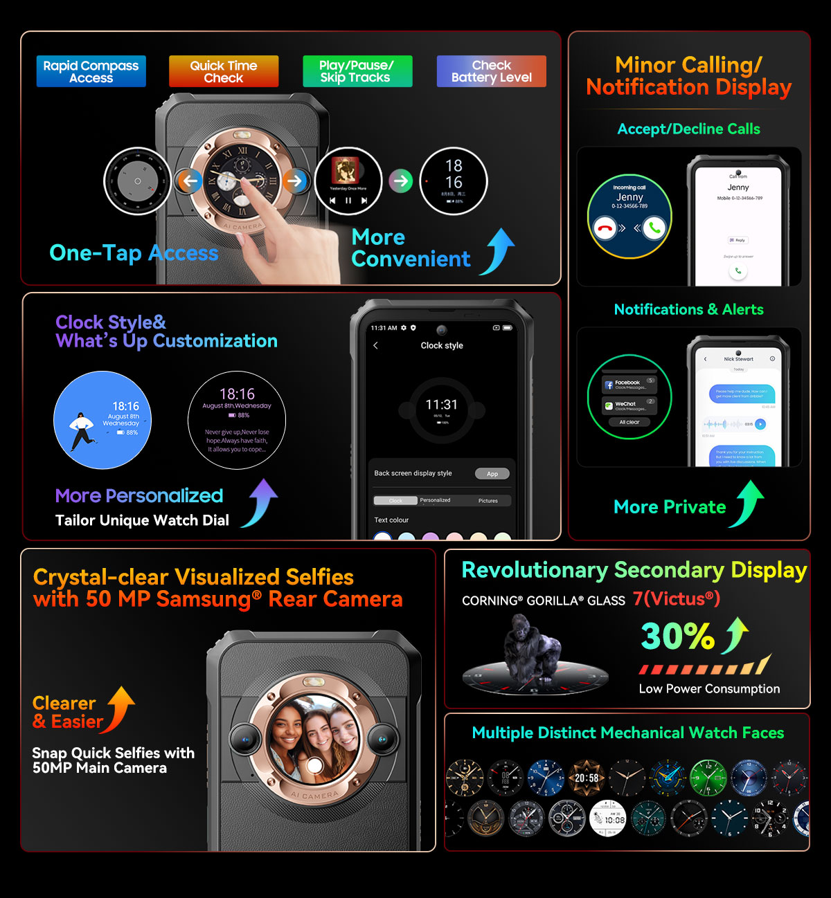 FOSSiBOT F101 Pro kestävä älypuhelin kaksoisnäytöllä 15 Gt muisti 128 Gt tallennustila 10600 mAh
