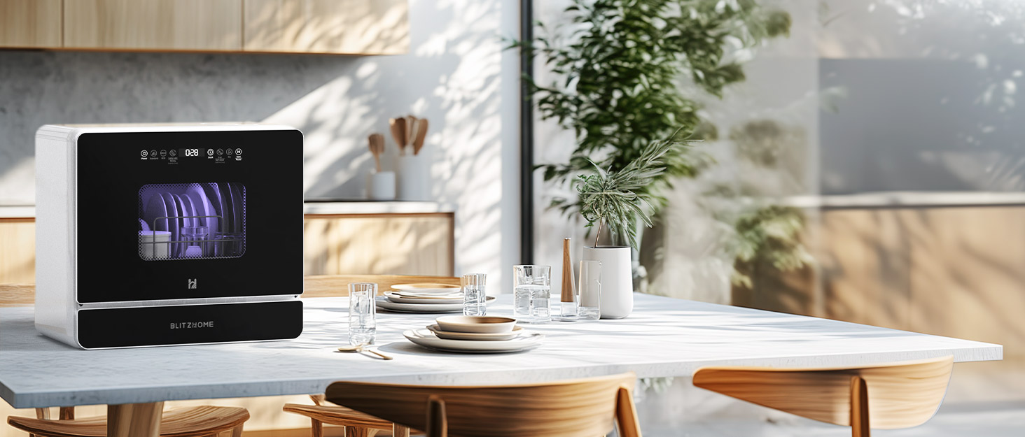 BlitzHome BH-6-CDW kannettava pöytätiskikone 5,2 l säiliöllä 9 ohjelmaa PTC-kuivaus 360° suihkut vedensäästö
