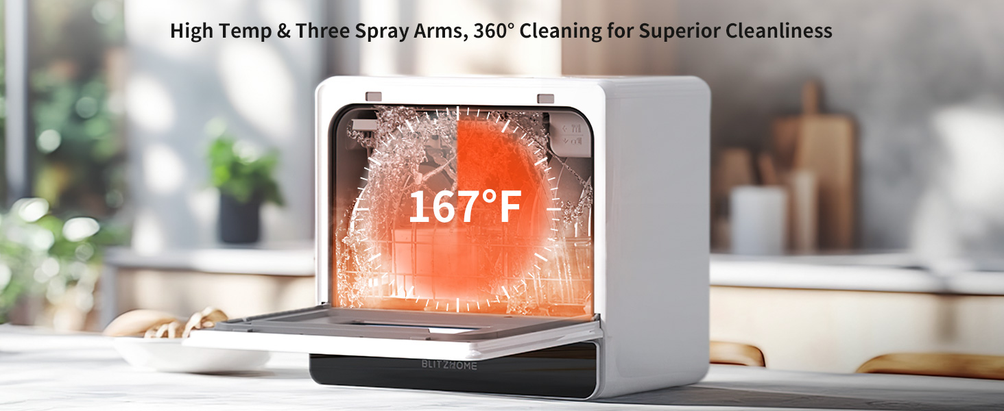 - 167℉/75℃ korkealämpöpesu ja 360° suihkut: kolme suutinta syväpuhdistukseen ja tahrattomaan lopputulokseen.