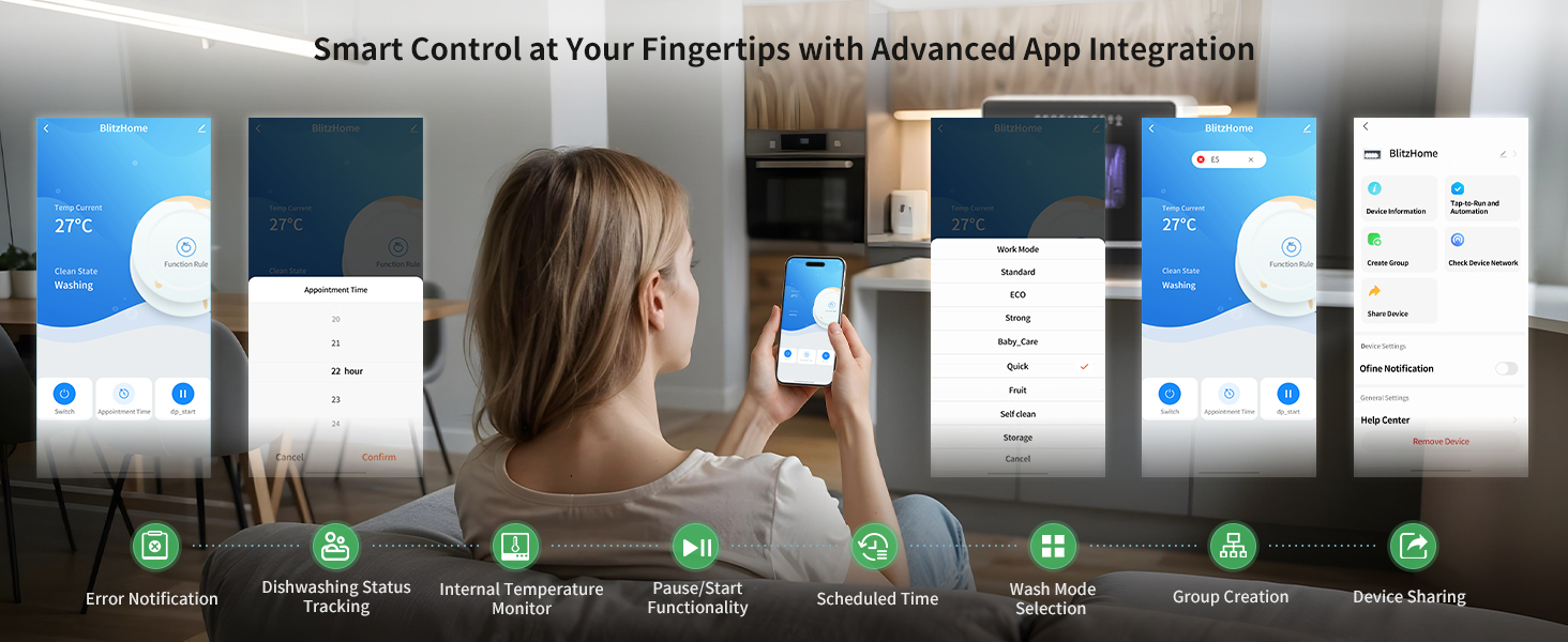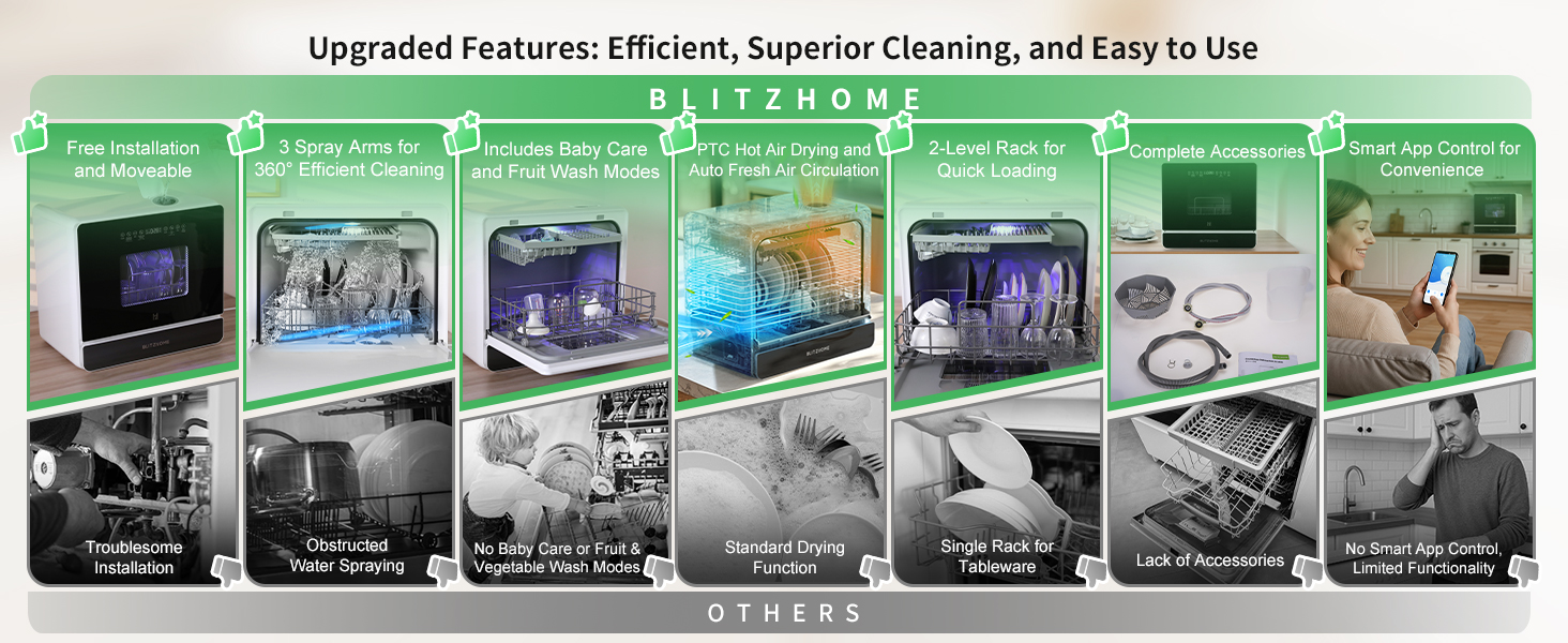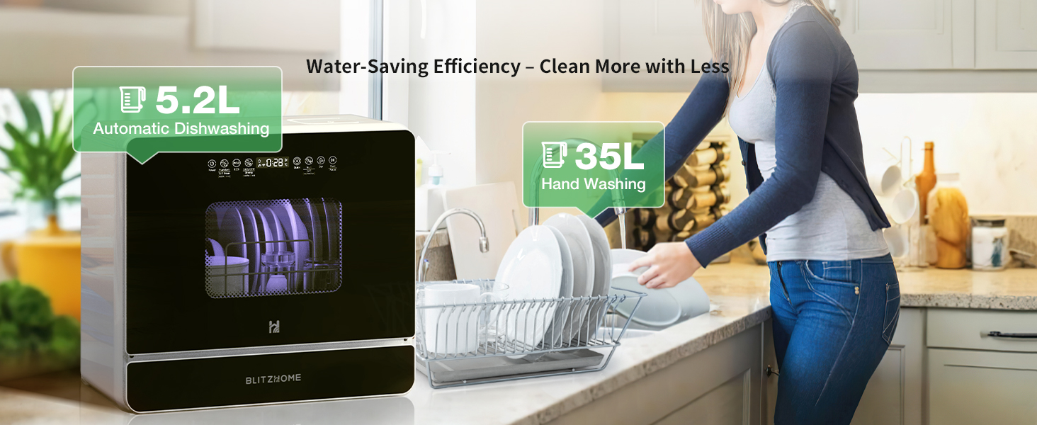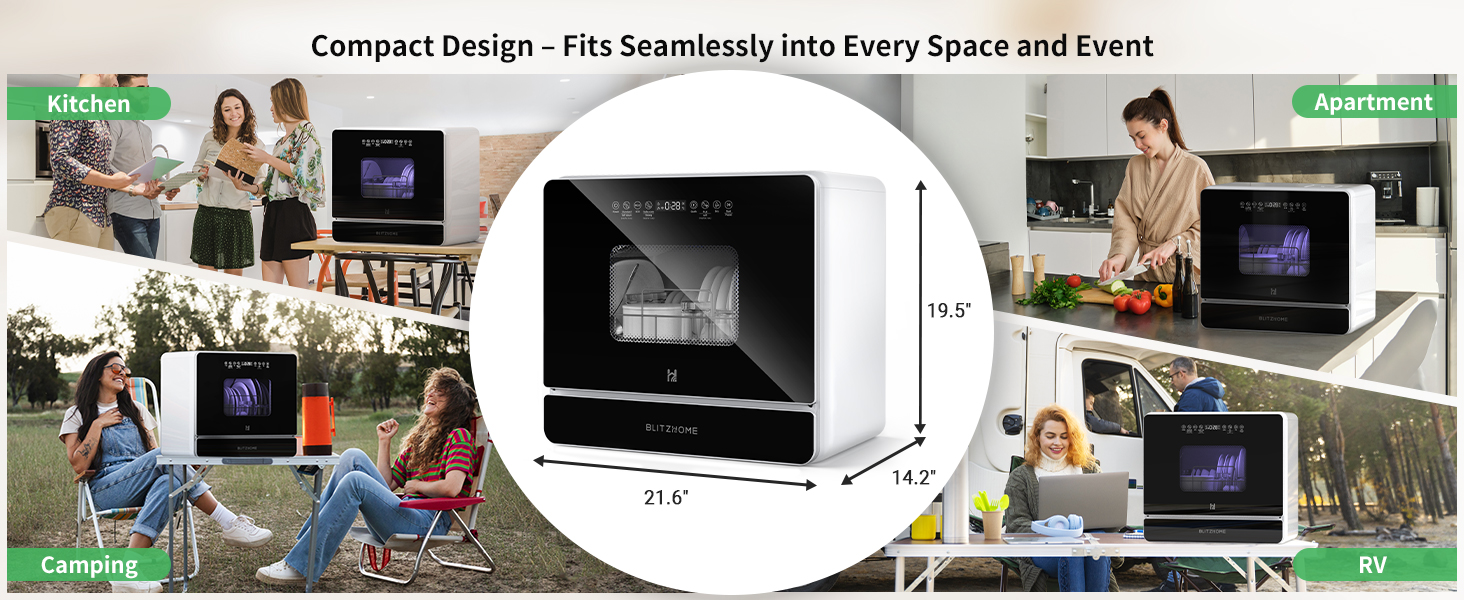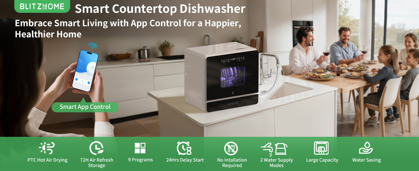 BlitzHome BH-6-CDW1 älykäs kannettava tiskikone sovellusohjauksella 5,2 l sisäinen säiliö 9 ohjelmaa