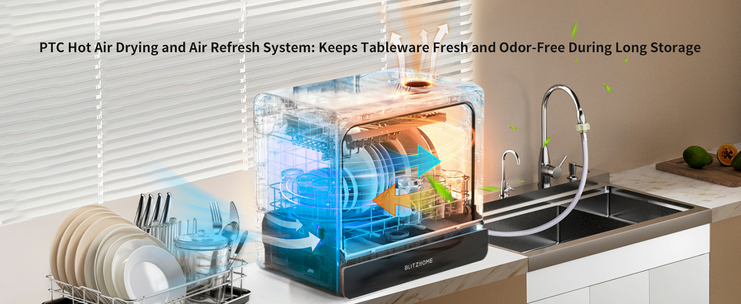 Kuumailmakuivaus ja 72 tunnin raikas säilytys: PTC-kuumailmakuivaus ja ilmanvaihto pitävät astiat kuivina ja hajuttomina jopa 72 tuntia. Asteja ei tarvitse tyhjentää heti pesun jälkeen.