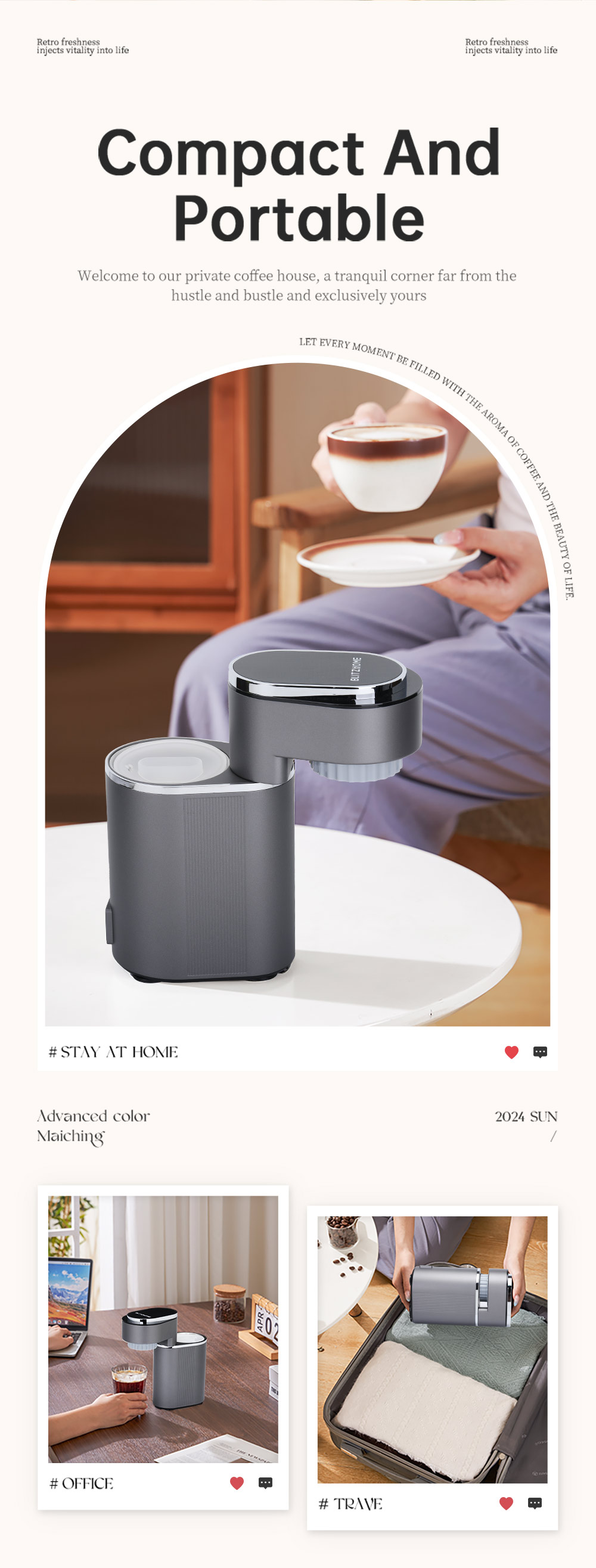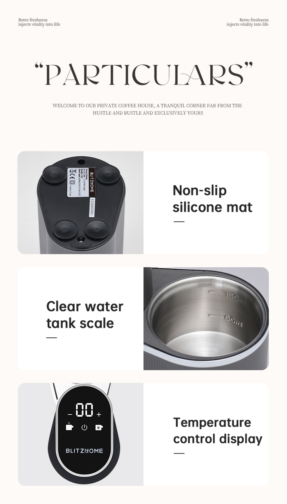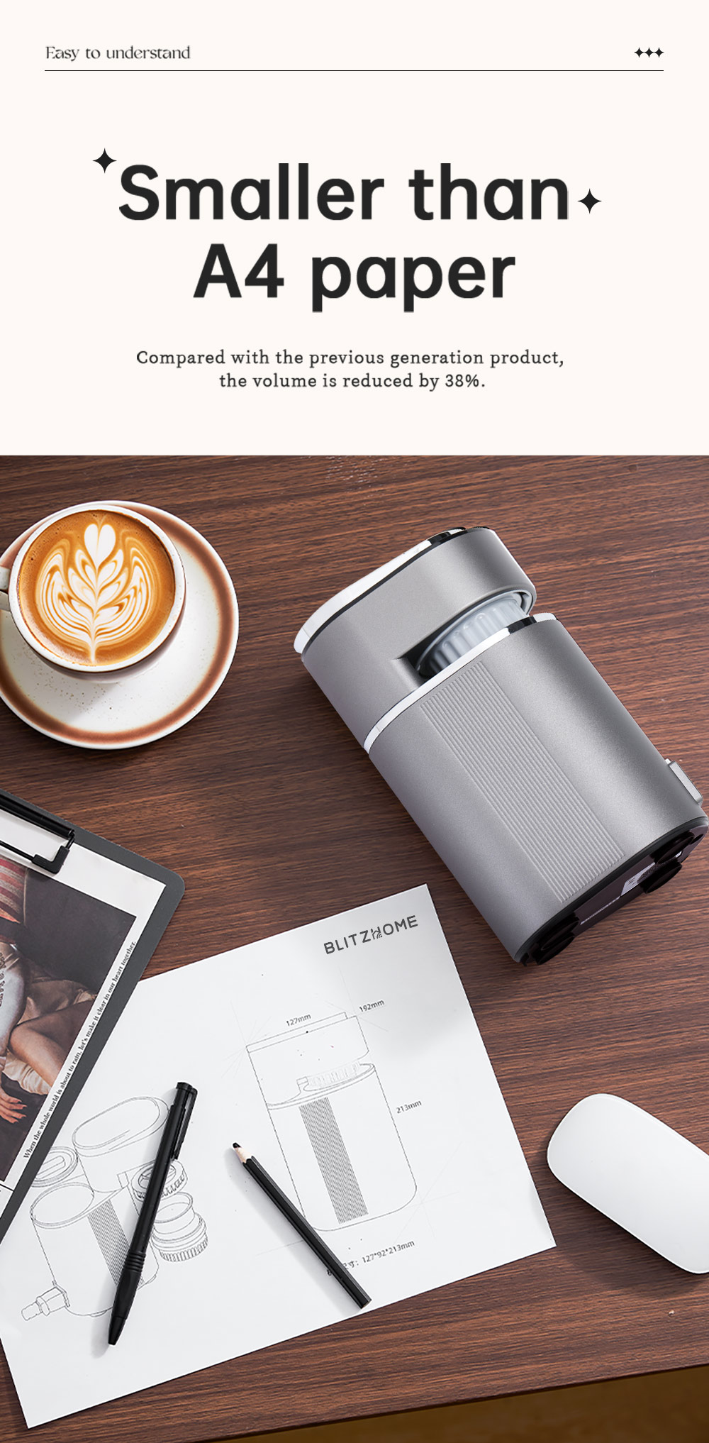 - Kompakti ja helposti mukana kulkeva: BlitzHome C180 Coffee Machine on erittäin pienikokoinen – pienempi kuin A4-arkki – sopien kotiin, toimistoon ja matkakäyttöön.