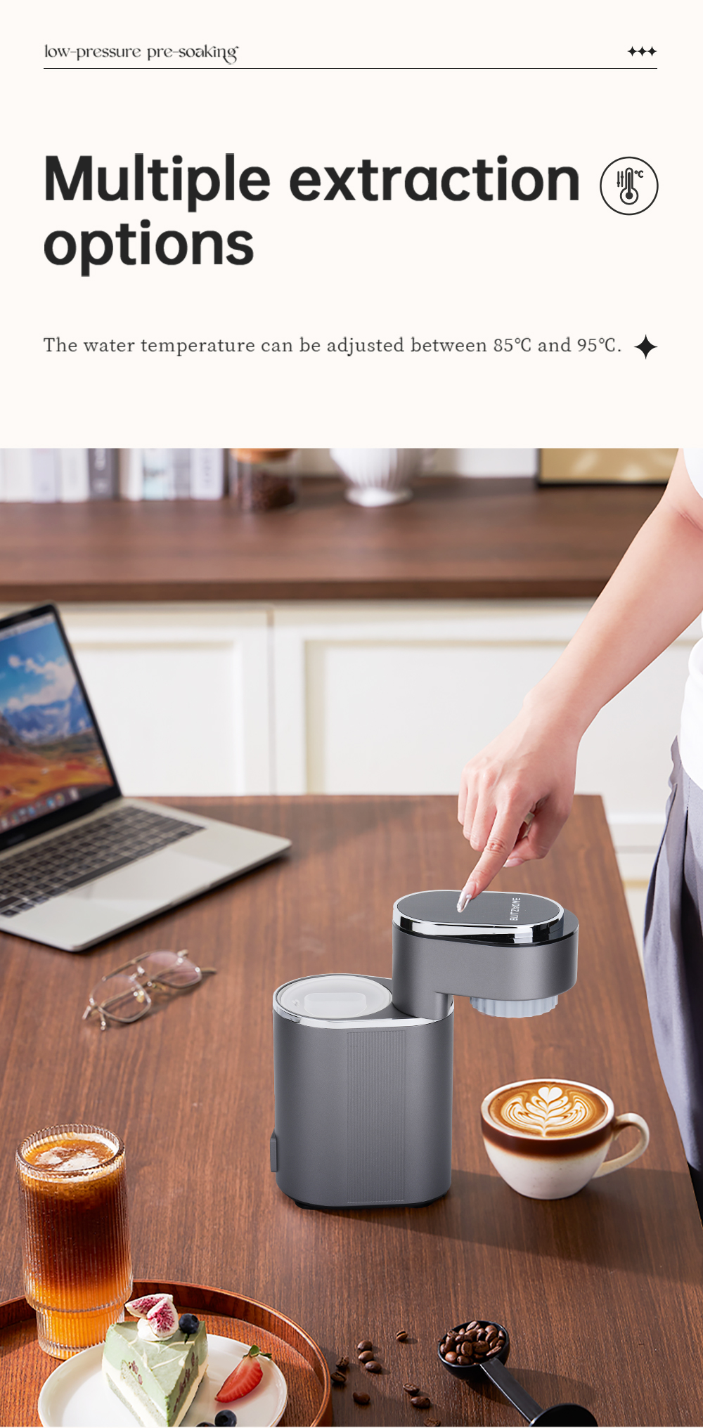 Pieni ja kannettava espresso-kone, 15 baaria, säädettävä kuuma tai kylmä uutto, helppo puhdistaa irrotettavilla osilla