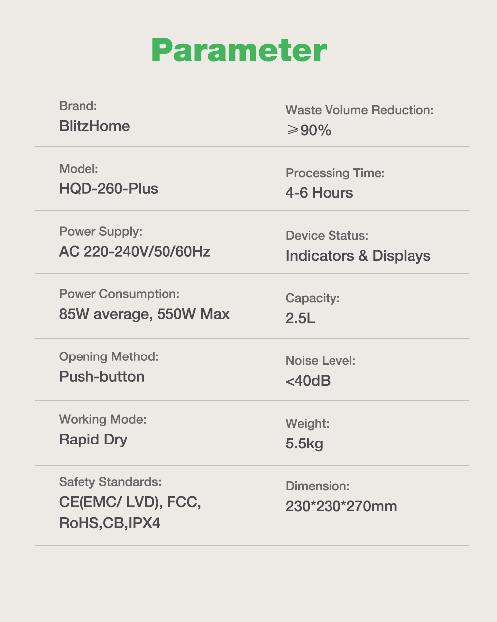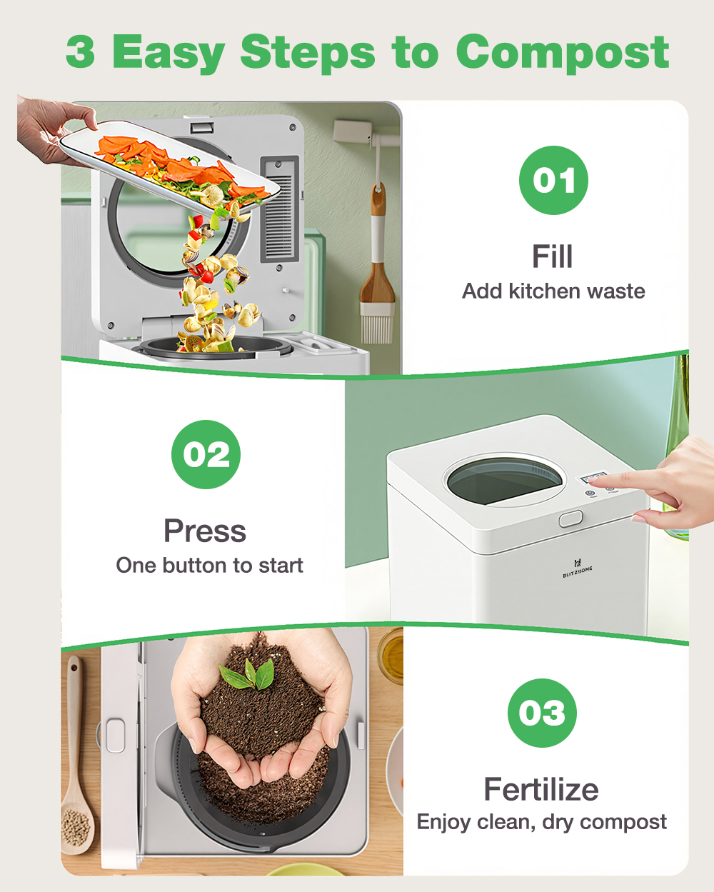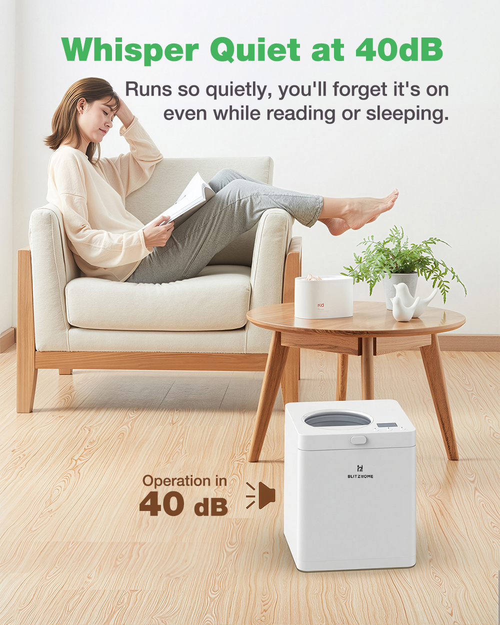 BlitzHome HQD-260-Plus kompakti keittiökompostori 2,5l näkyvä hajuton kolme tilaa hiljainen