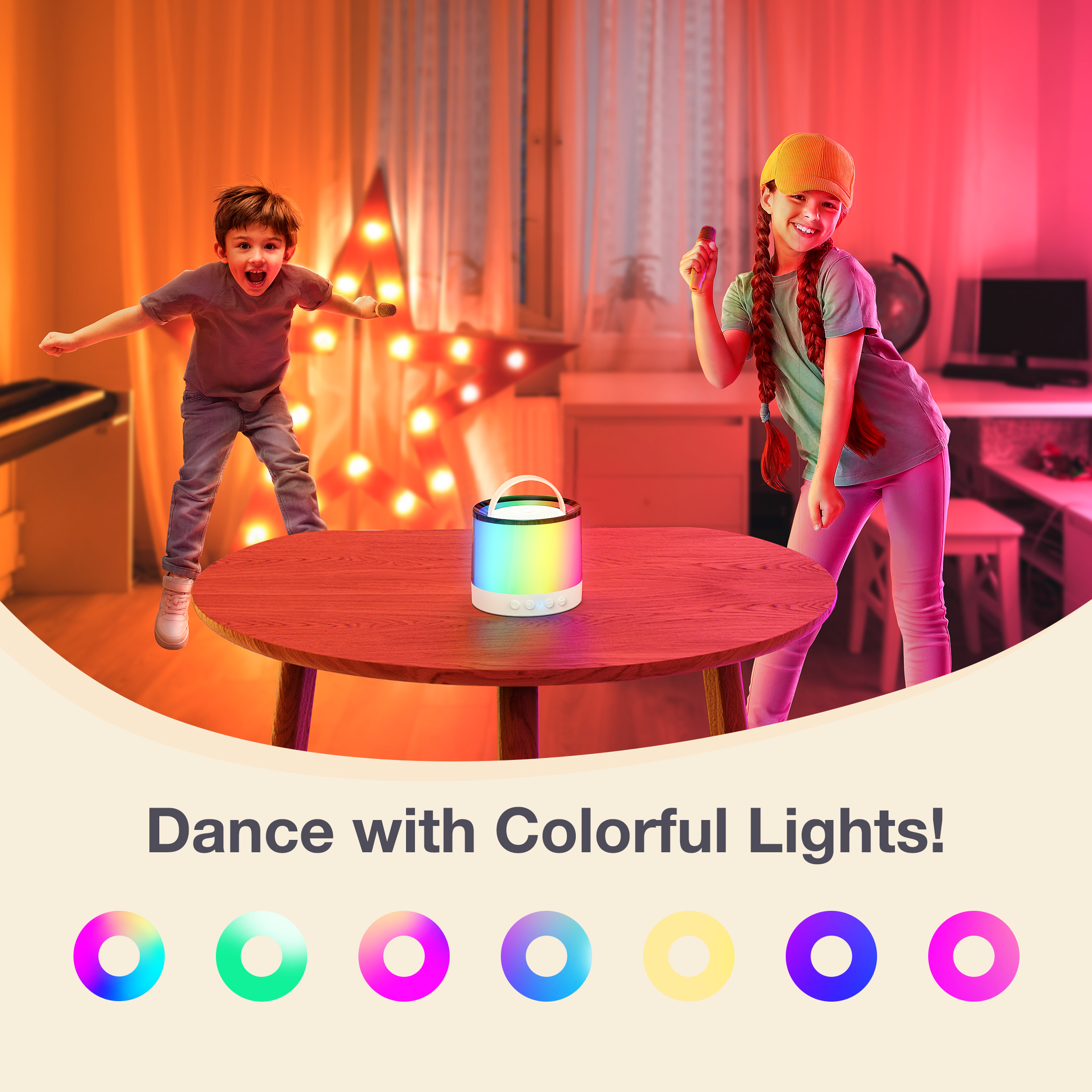 BlitzMax lasten karaoke-kaiutin tarjoaa selkeän äänen, helpon kannettavuuden ja hauskat valotehosteet koti-iltoihin, juhliin ja leikkihetkiin.