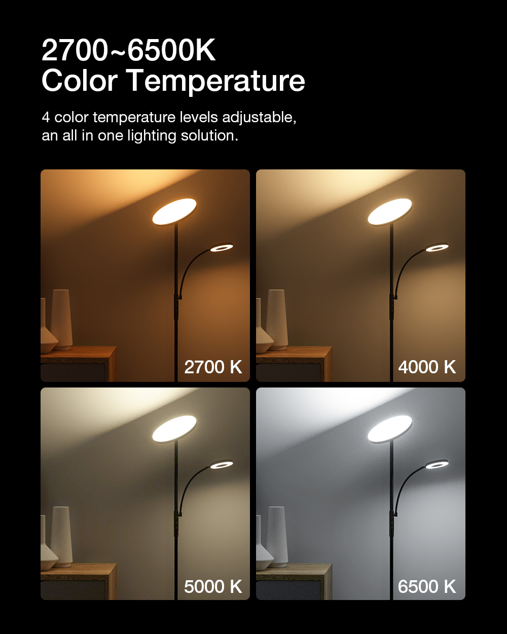 4 esiasetettua värilämpötilaa (2700/4000/5000/6500K) ja säädettävä kirkkaus monenlaisiin tarpeisiin. - Silmille miellyttävä