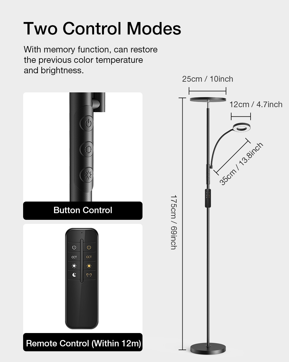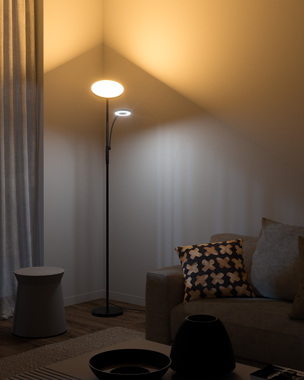 Välkkymätön, häikäisysuojattu valo sopii hyvin lukemiseen. - Kaksi ohjaustapaa