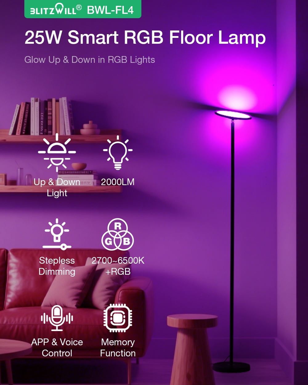 BlitzWill BWL-FL4 älylattiavalaisin 25 watin täysväri 2000 lumenia portaaton himmennys sovellus- ja ääniohjaus
