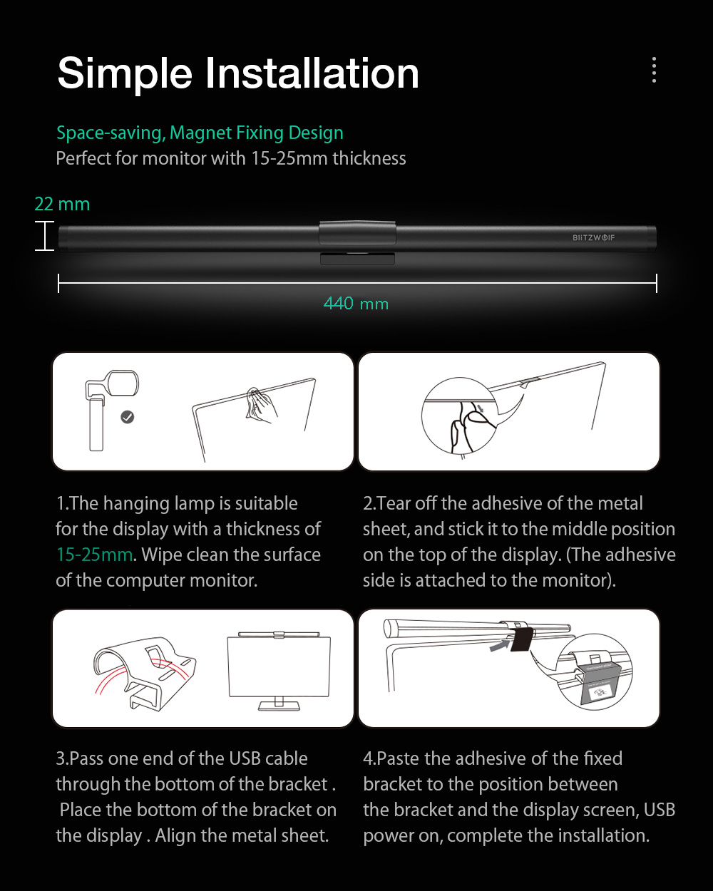 • Vähentää näytön heijastuksia ja silmien rasitusta. Häikäisemätön, kirkas ja pehmeä valo tekee katselusta miellyttävää.