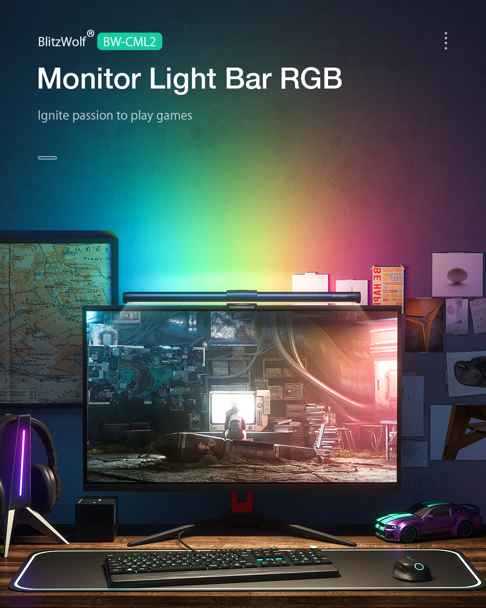 Työ, opiskelu, viihde ja pelaaminen tapahtuvat yhä useammin tietokoneen äärellä. Liian kirkas tai liian hämärä valaistus kuormittaa silmiä. BW-CML2 -näyttövalo tuo valon suoraan työpöydälle ilman näytölle heijastumista ja tarjoaa 15 RGB-taustavalotilaa, jotka luovat tunnelmaa ja tukevat keskittymistä sekä pelaamisen elämyksellisyyttä.
