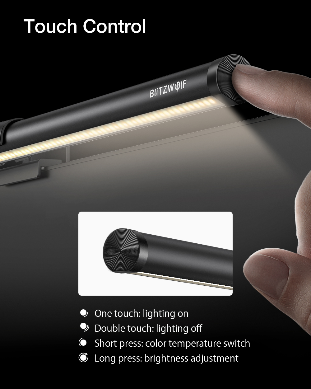 BlitzWolf BW-CML2 näyttövalo kosketusohjaus säädettävä värilämpötila USB lukuvalo silmäystävällinen