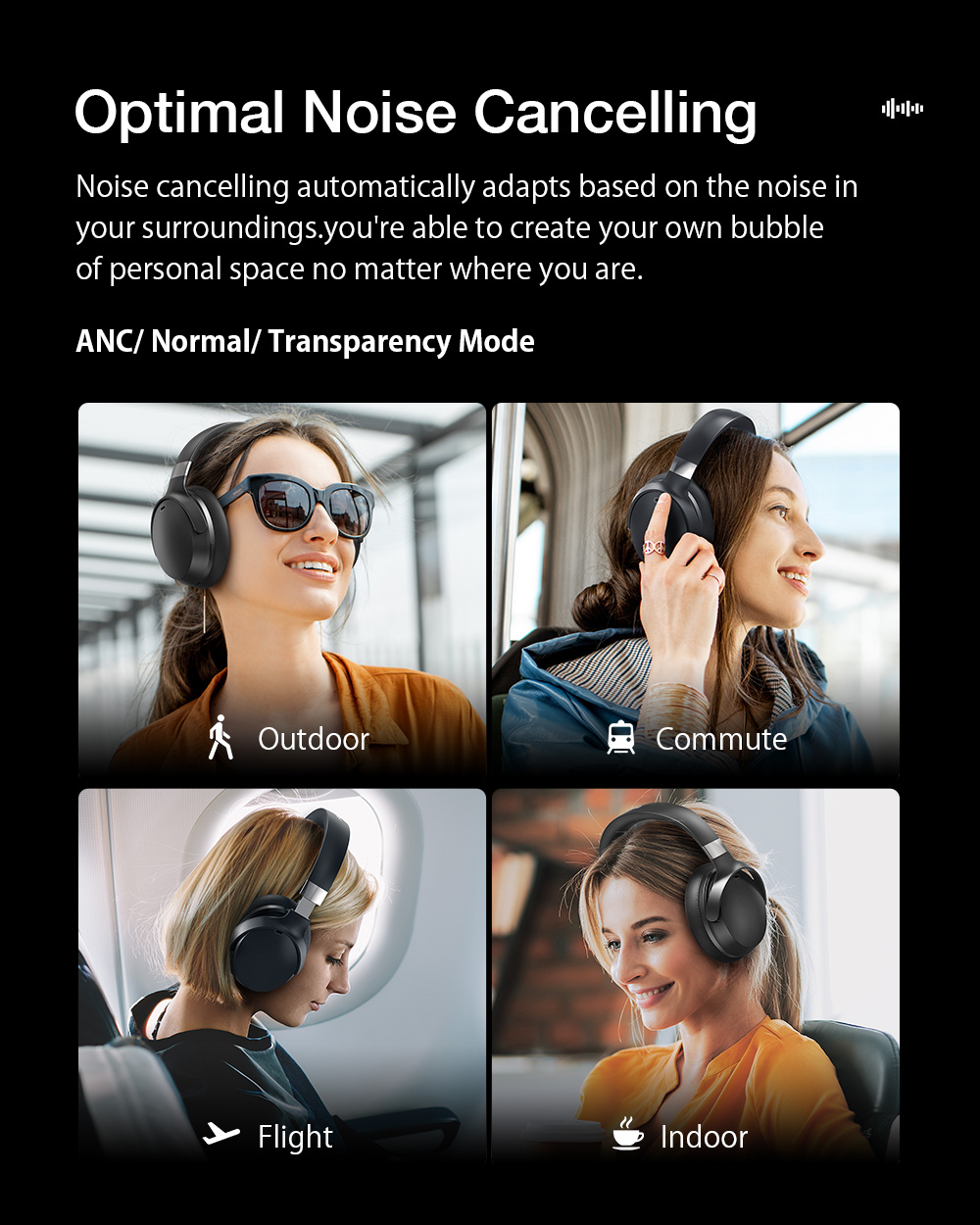 - Matkakäyttöön: sisäänrakennettu 1000mAh akku, jopa 50 tuntia toistoa ANC-tilassa.