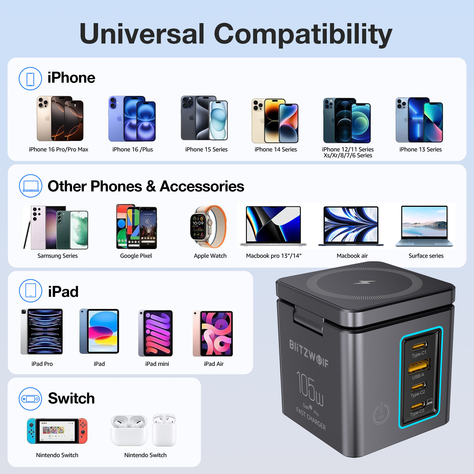 1 x Blitzwolf i113 Max 105W 6-in-1 Multifunctional Desktop Charger Station