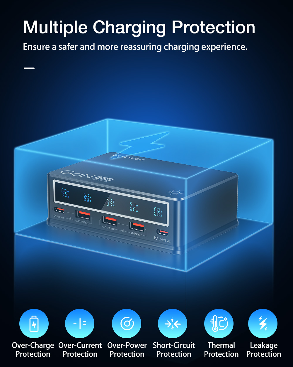 - Turvatoiminnot: ylivirta-, ylijännite- ja oikosulkusuojaus suojaavat laitteitasi latauksen aikana.
