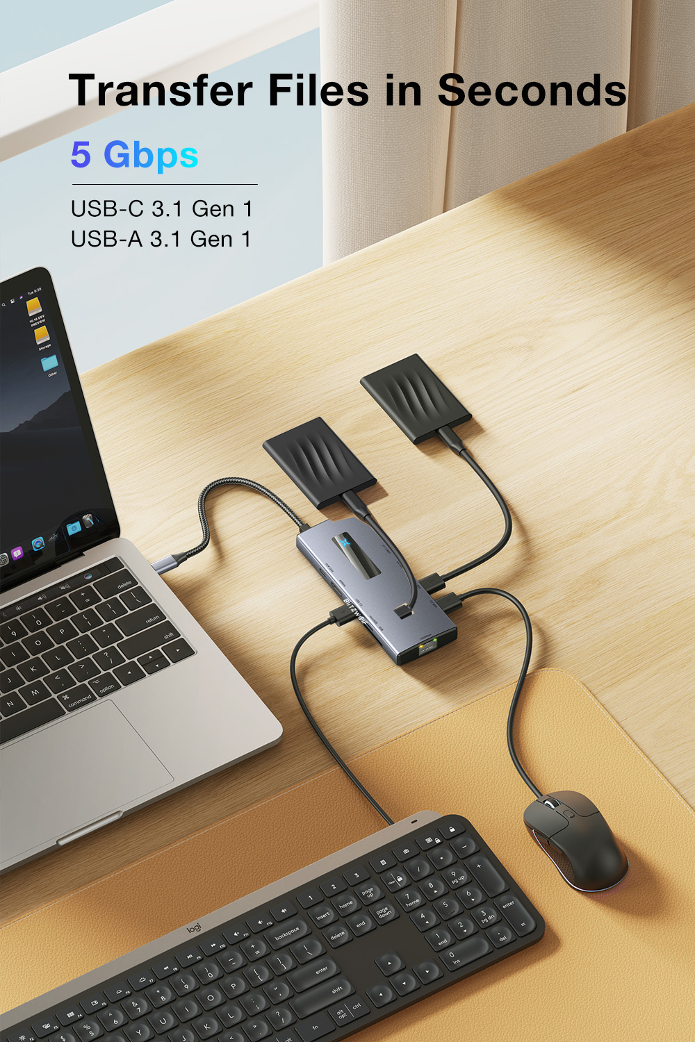 1. Laajentaa tietokoneen liitettävyyttä ja toimintoja: ulkoiset tallennuslaitteet, virtalähteen sovitin, kortinlukija, 4K-näyttö 60Hz, PD-pikalataus 100W, gigabitin kiinteä verkko ja USB 3.0 -hubi. Täysi 3.0-siirto ja laajennus.
