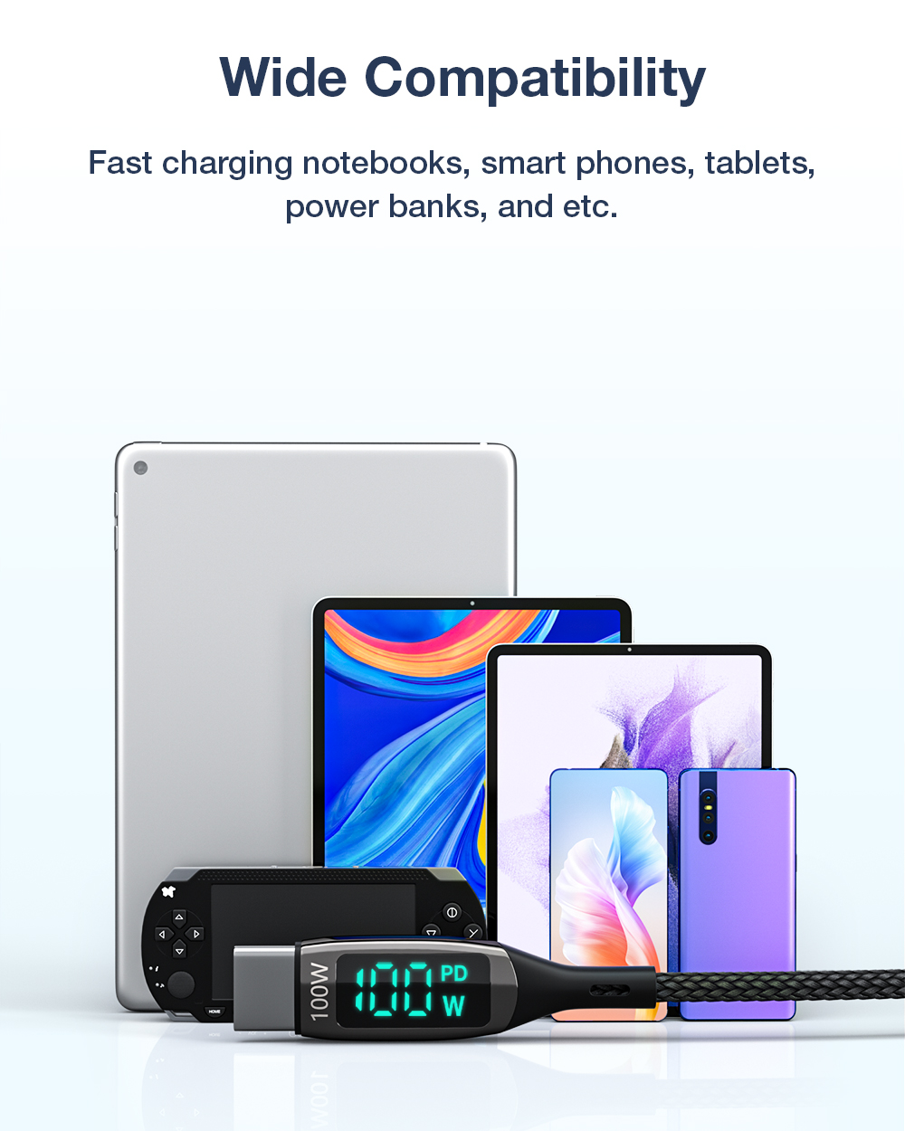 1 × BW-TC23 100W LED-näytöllinen Type-C–Type-C-kaapeli |