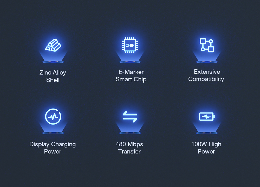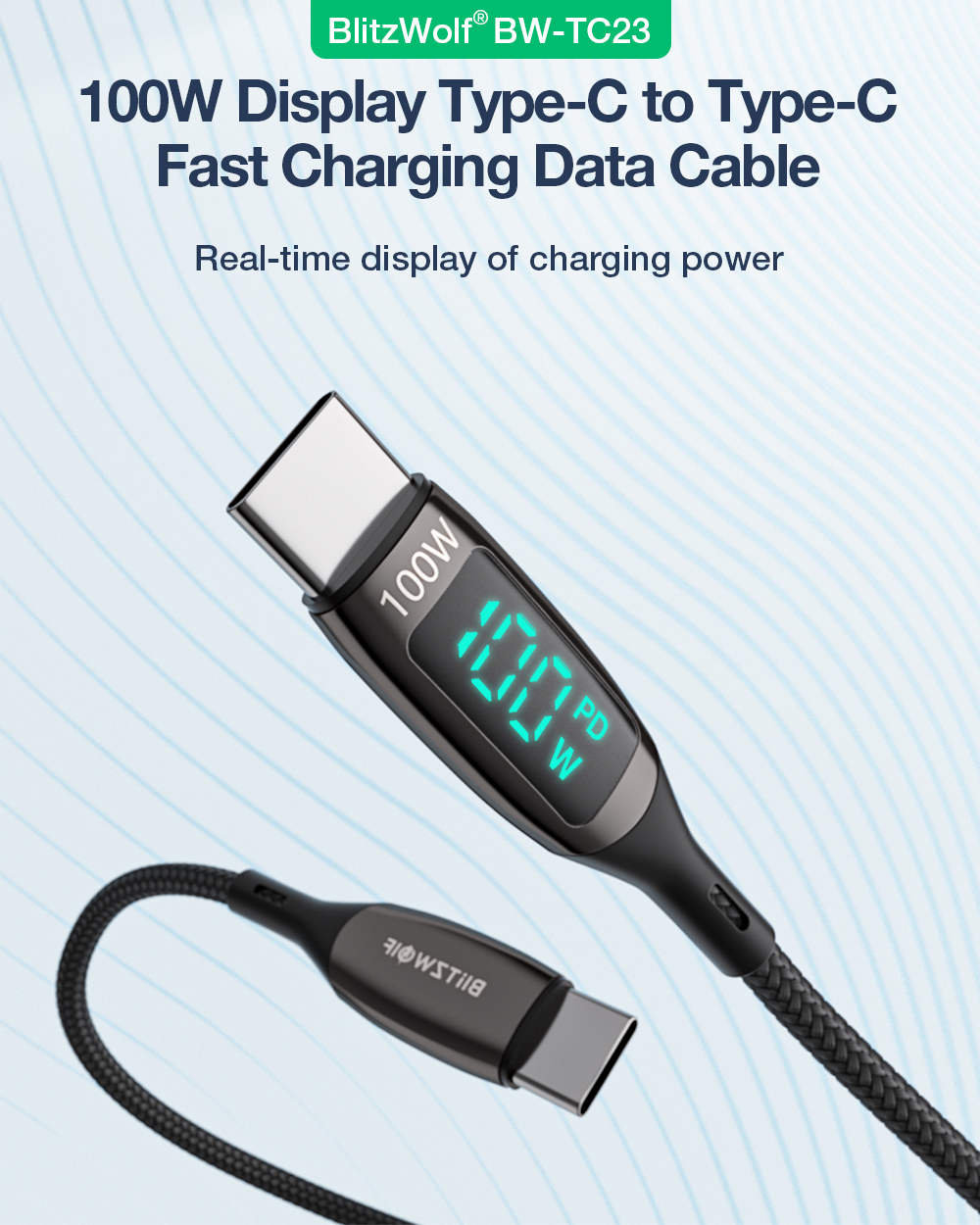 BlitzWolf® BW-TC23 on kestävä Type-C–Type-C-lataus- ja synkronointikaapeli, joka tukee jopa 100W (20V=5A) pikalatausta ja 480Mbps -siirtonopeutta. Sinkkiseoksesta ja nylonpunoksesta valmistettu rakenne parantaa kestävyyttä ja vähentää kaapelin takertumista.