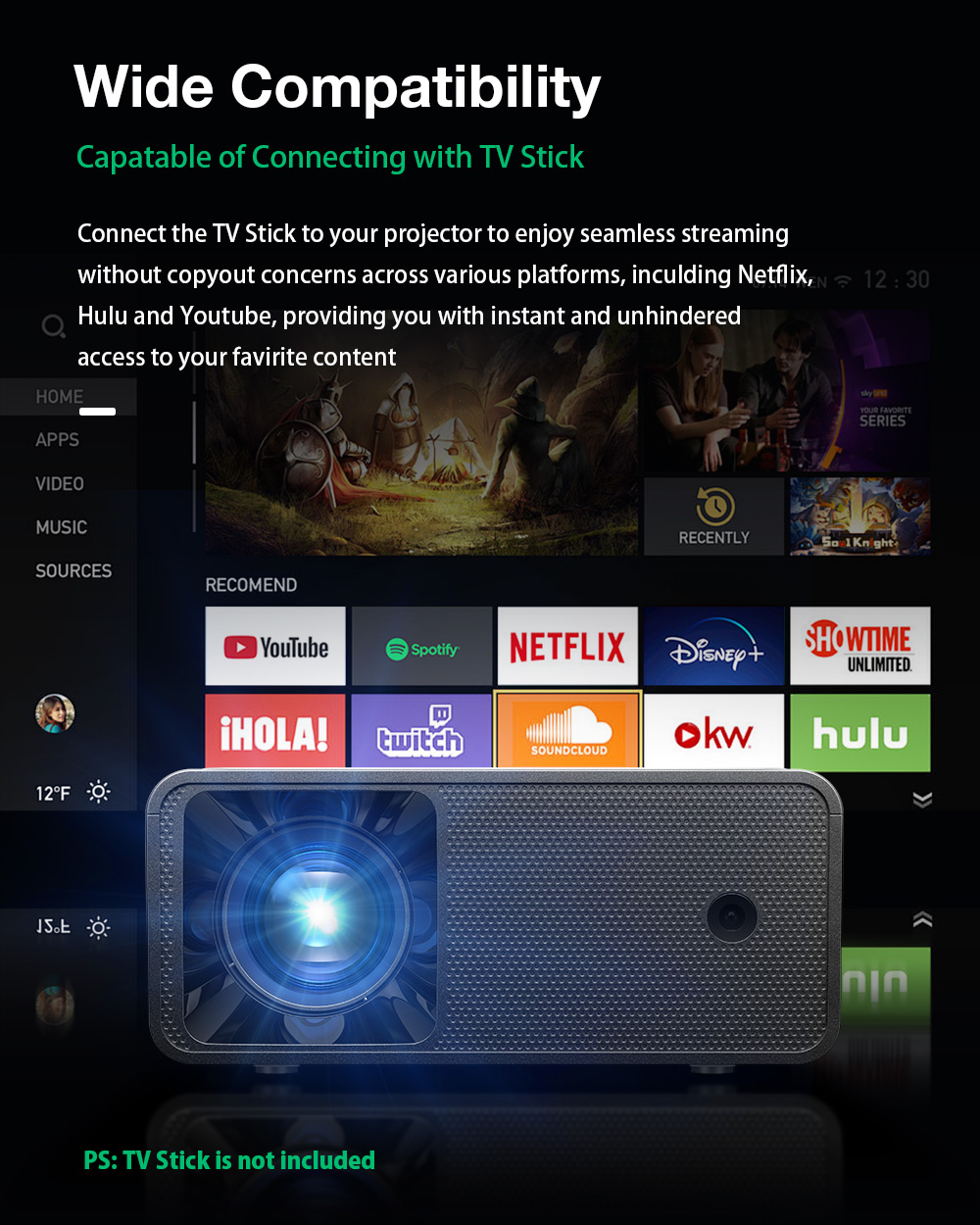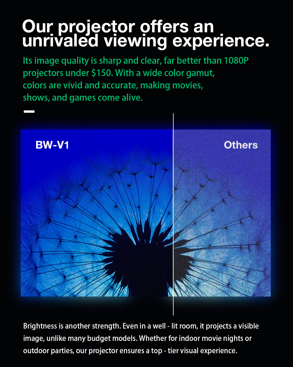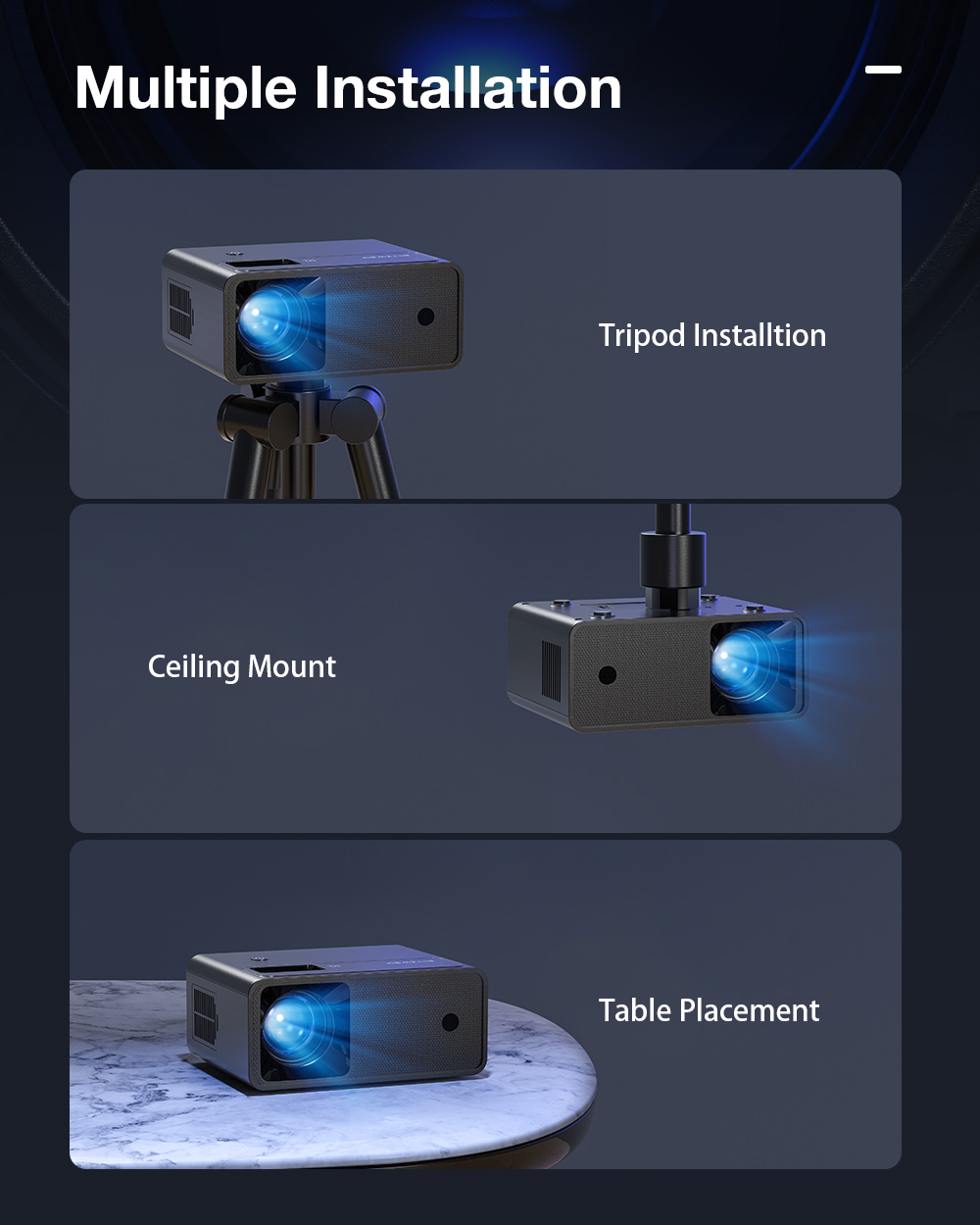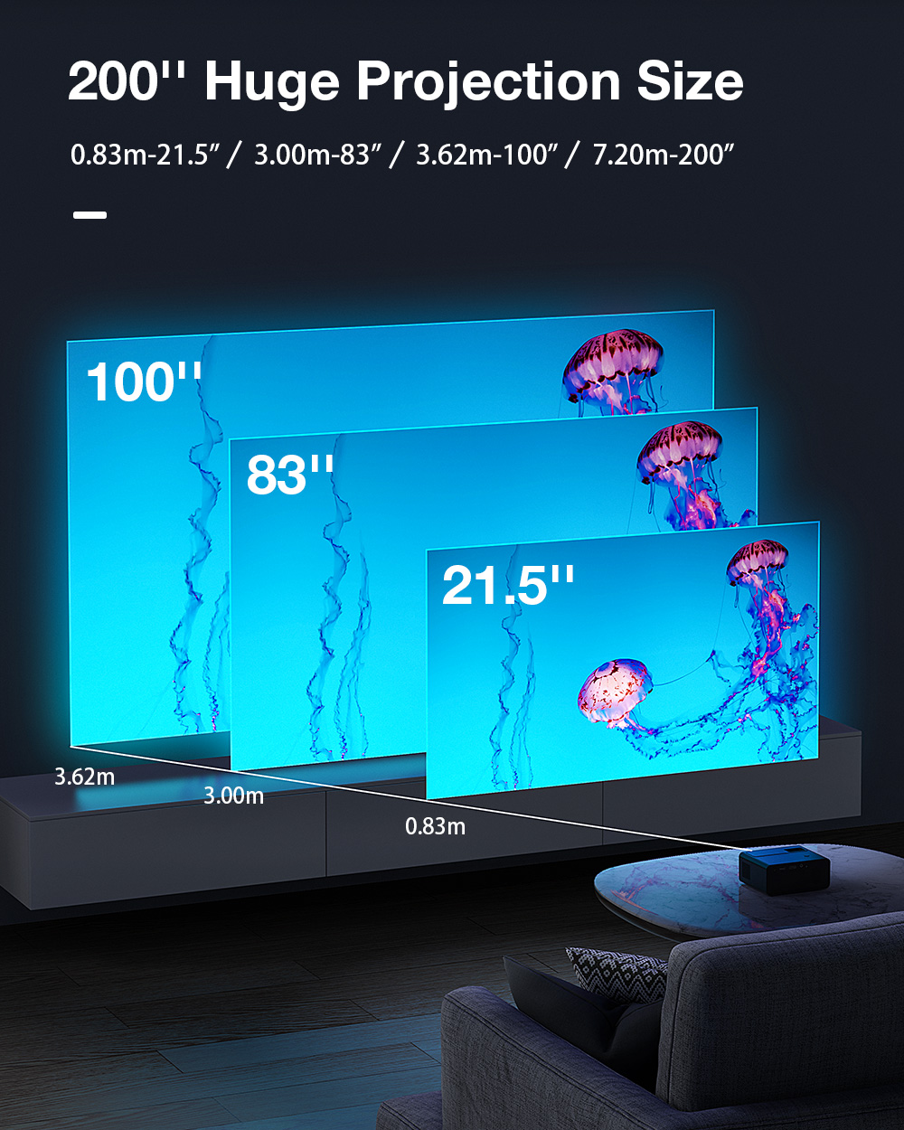Nauti terävästä 720P HD -kuvasta, joka muuttaa seinän jopa 100 tuuman kotiteatteriksi – sopii elokuviin ja pelaamiseen.
