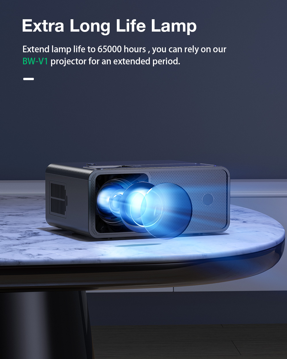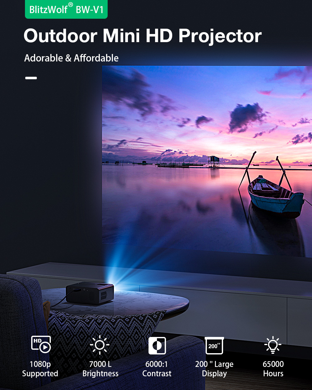 BlitzWolf BW-V1 mini-projektori 180-ANSI-lumenia tukee 1080p 180-tuuman näyttö ulkokäyttöön kevyt lastenprojektori