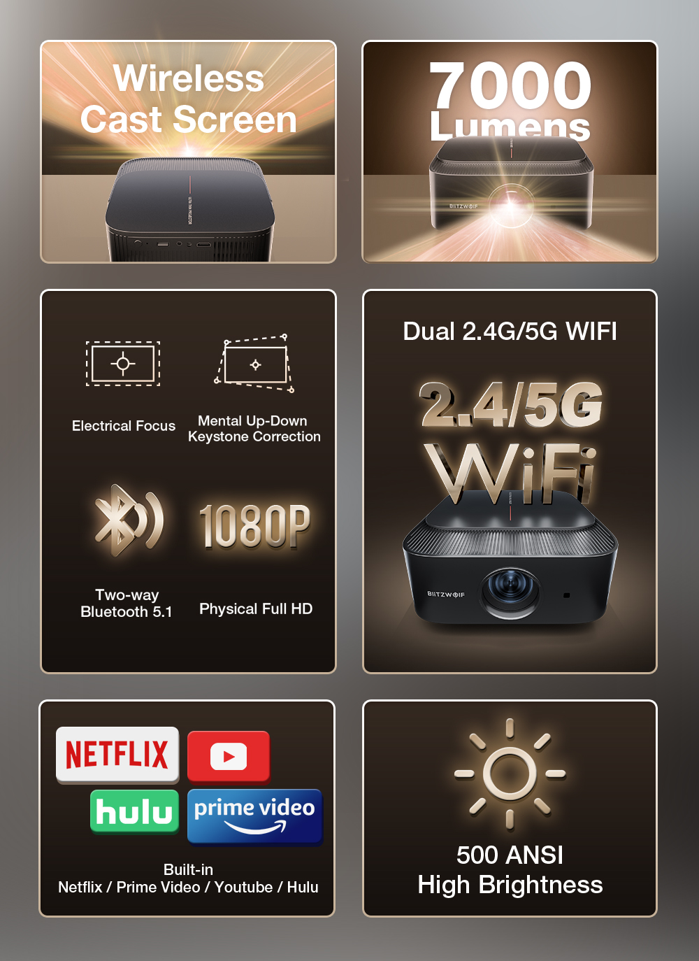 BlitzWolf BW-V10 Android TV 13.0 Netflix-sertifioitu kannettava projektori täys-HD 500 ANSI-lumen